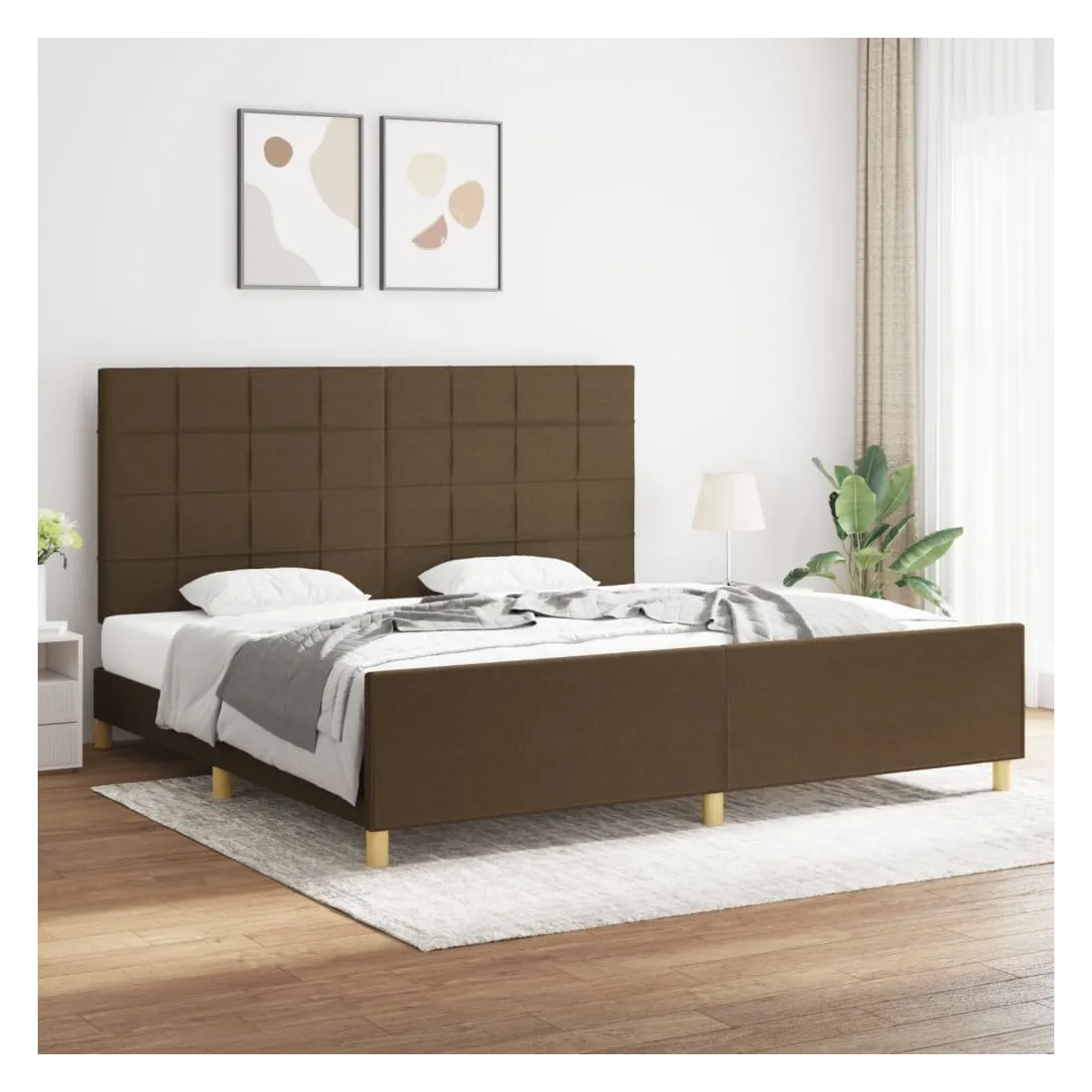 Cadre de lit sans matelas marron foncé 200x200 cm tissu