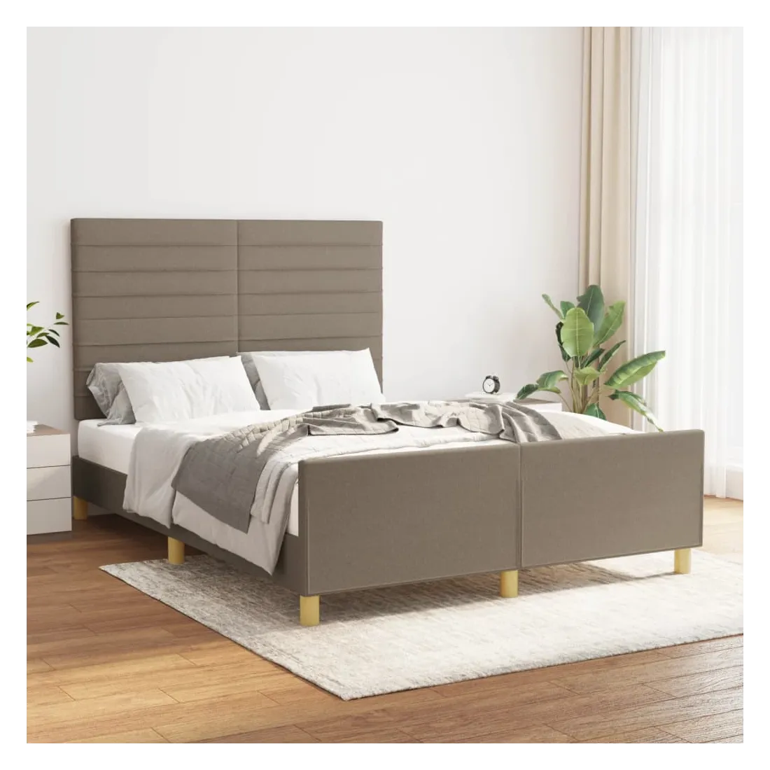 Obtenez une meilleure nuit de sommeil reposante grâce à ce cadre de lit avec tête de lit ! Il est un supplément accueillant à toute chambre à coucher. Tissu durable : le tissu présente un aspect simple et épuré, et il est respirant et durable.Hauteur réglable : la tête de lit est réglable en hauteur selon vos préférences.Pieds de soutien : le lit est soutenu par des pieds robustes, qui assurent sa stabilité, sa sécurité et sa fermeté.Lattes de contreplaqué : les lattes de contreplaqué assurent une bonne répartition du poids, garantissant que le matelas reste en place à chaque torsion de votre corps pendant le sommeil.Excellent soutien : la tête de lit vous offre un excellent soutien du dos lorsque vous êtes assis dans votre lit pour lire ou regarder la télévision. Remarque :La livraison comprend uniquement un cadre de lit. Le matelas n'est pas inclus. Vous pouvez consulter notre boutique pour trouver les matelas assortis.Chaque produit est livré avec un manuel de montage dans la boîte pour un montage facile.