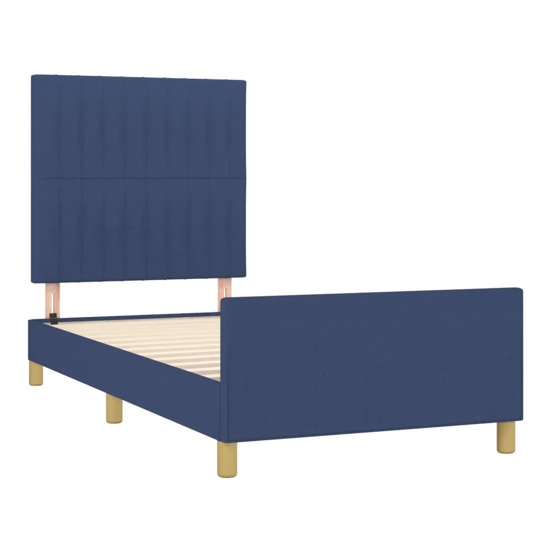 Cadre de lit sans matelas bleu 90x200 cm tissu