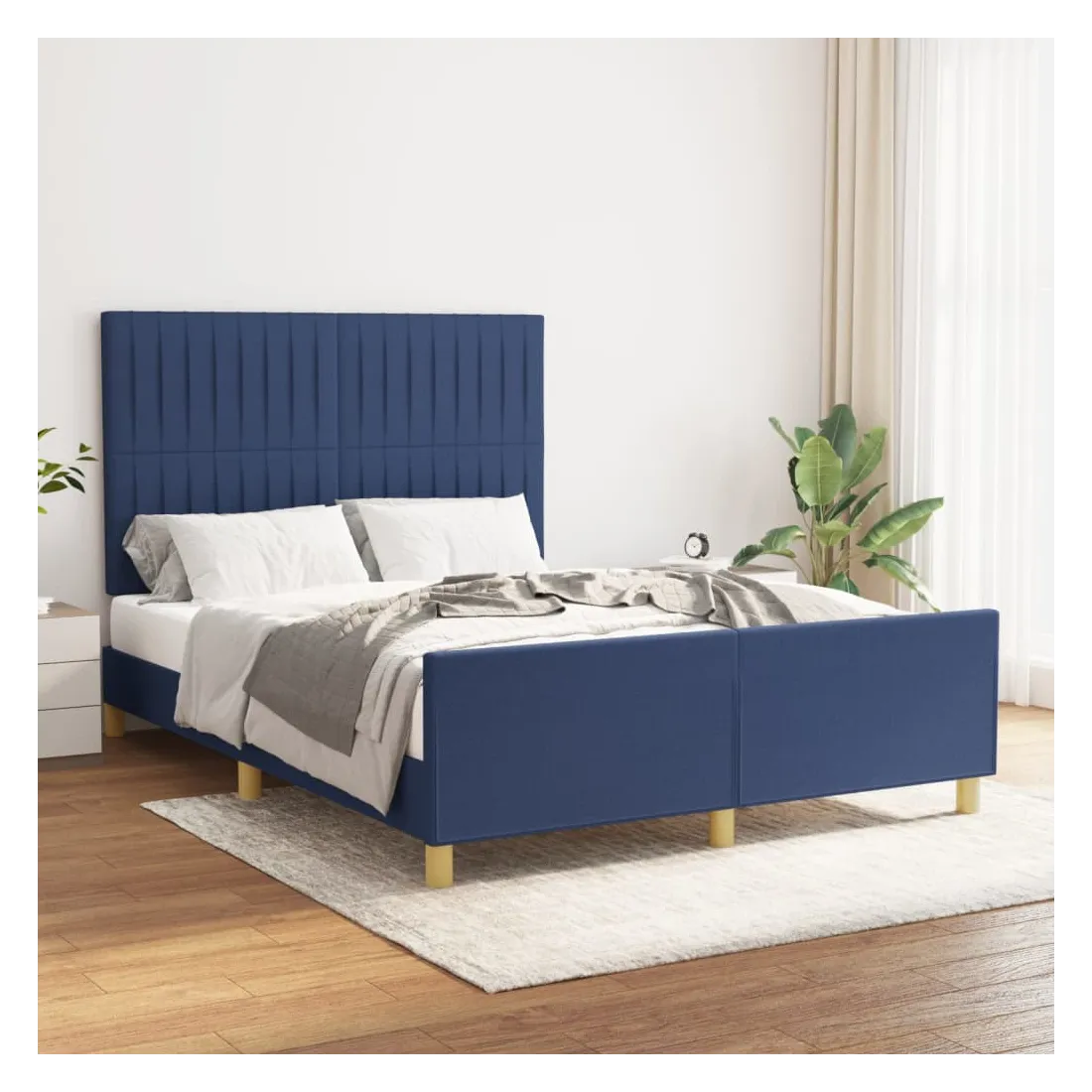 Cadre de lit sans matelas bleu 140x190 cm tissu