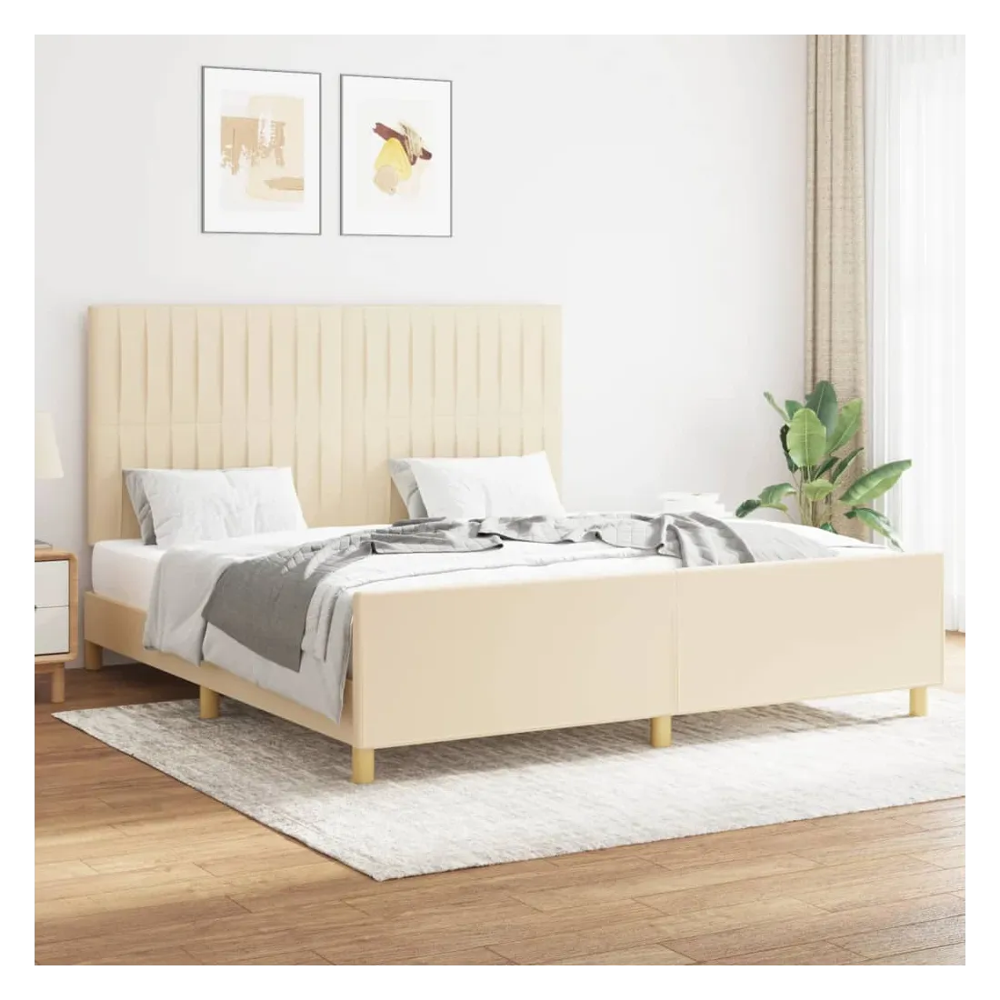 Cadre de lit sans matelas crème 160x200 cm tissu