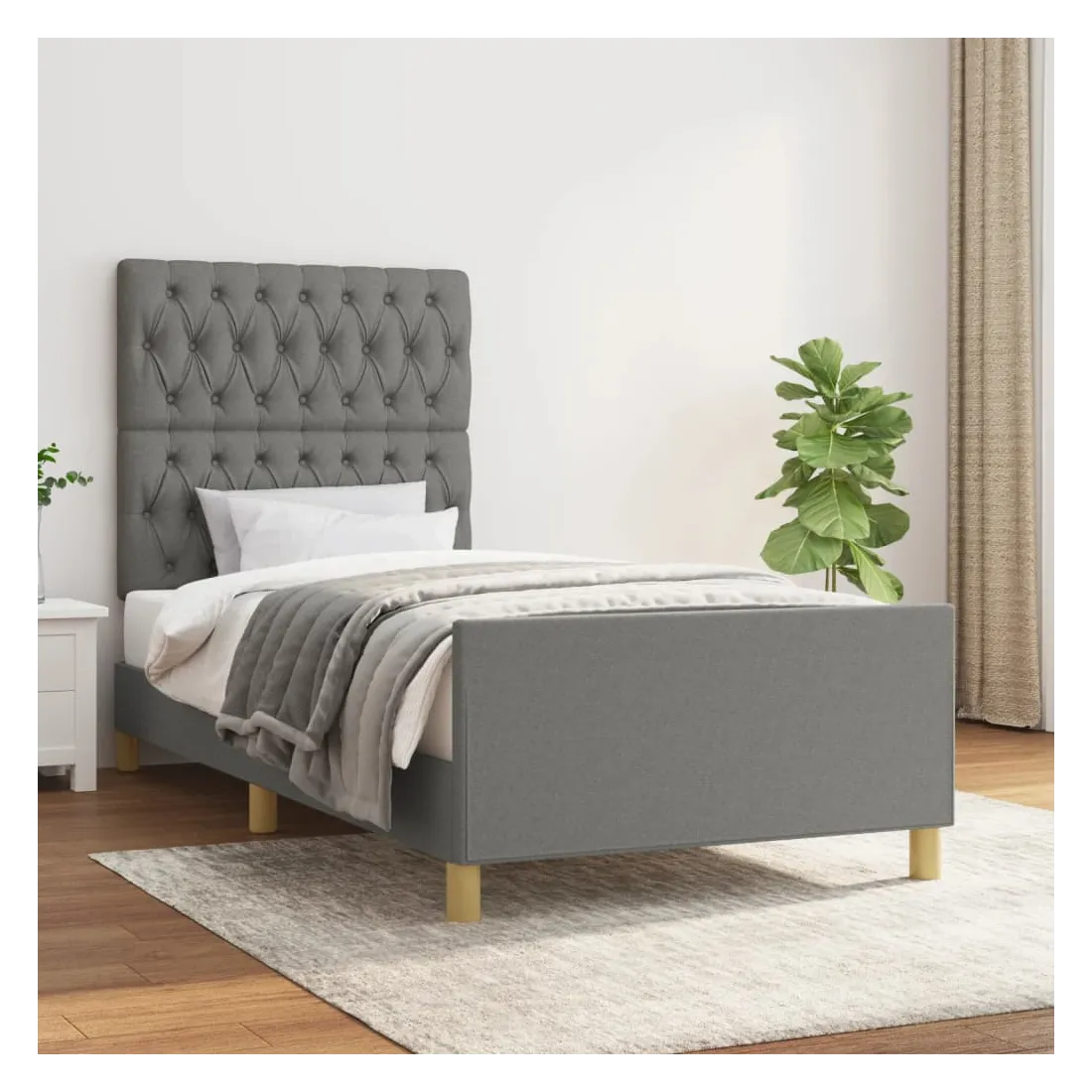 Cadre de lit sans matelas gris foncé 90x190 cm tissu