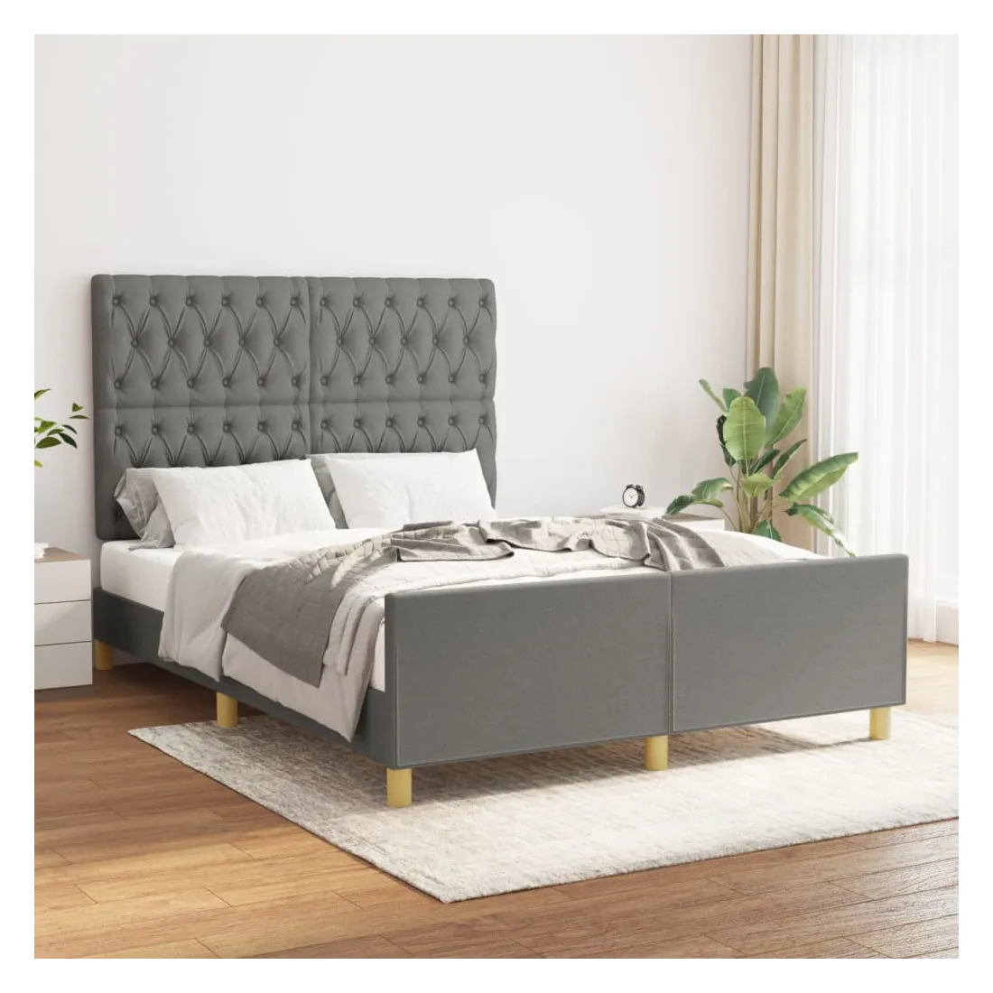 Obtenez une meilleure nuit de sommeil reposante grâce à ce cadre de lit avec tête de lit ! Il est un supplément accueillant à toute chambre à coucher. Tissu durable : le tissu présente un aspect simple et épuré, et il est respirant et durable.Hauteur réglable : la tête de lit est réglable en hauteur selon vos préférences.Pieds de soutien : le lit est soutenu par des pieds robustes, qui assurent sa stabilité, sa sécurité et sa fermeté.Lattes de contreplaqué : les lattes de contreplaqué assurent une bonne répartition du poids, garantissant que le matelas reste en place à chaque torsion de votre corps pendant le sommeil.Excellent soutien : la tête de lit vous offre un excellent soutien du dos lorsque vous êtes assis dans votre lit pour lire ou regarder la télévision. Remarque :La livraison comprend uniquement un cadre de lit. Le matelas n'est pas inclus. Vous pouvez consulter notre boutique pour trouver les matelas assortis.Chaque produit est livré avec un manuel de montage dans la boîte pour un montage facile.