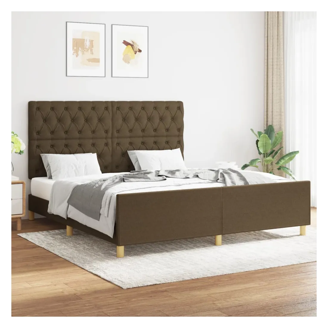 Cadre de lit sans matelas marron foncé 160x200 cm tissu