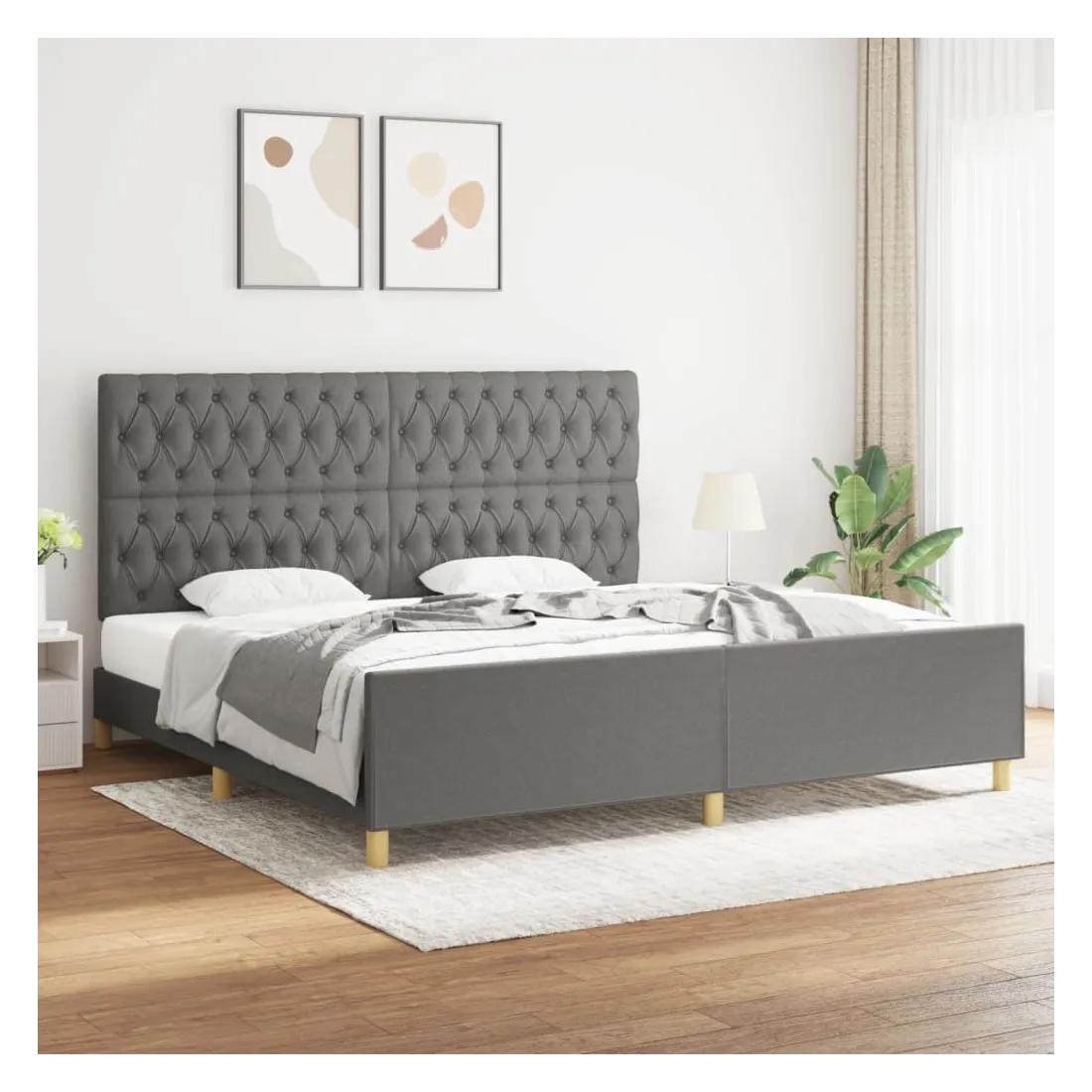 Obtenez une meilleure nuit de sommeil reposante grâce à ce cadre de lit avec tête de lit ! Il est un supplément accueillant à toute chambre à coucher. Tissu durable : le tissu présente un aspect simple et épuré, et il est respirant et durable.Hauteur réglable : la tête de lit est réglable en hauteur selon vos préférences.Pieds de soutien : le lit est soutenu par des pieds robustes, qui assurent sa stabilité, sa sécurité et sa fermeté.Lattes de contreplaqué : les lattes de contreplaqué assurent une bonne répartition du poids, garantissant que le matelas reste en place à chaque torsion de votre corps pendant le sommeil.Excellent soutien : la tête de lit vous offre un excellent soutien du dos lorsque vous êtes assis dans votre lit pour lire ou regarder la télévision. Remarque :La livraison comprend uniquement un cadre de lit. Le matelas n'est pas inclus. Vous pouvez consulter notre boutique pour trouver les matelas assortis.Chaque produit est livré avec un manuel de montage dans la boîte pour un montage facile.