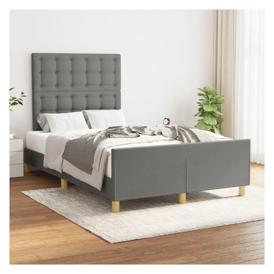 Obtenez une meilleure nuit de sommeil reposante grâce à ce cadre de lit avec tête de lit ! Il est un supplément accueillant à toute chambre à coucher. Tissu durable : le tissu présente un aspect simple et épuré, et il est respirant et durable.Hauteur réglable : la tête de lit est réglable en hauteur selon vos préférences.Pieds de soutien : le lit est soutenu par des pieds robustes, qui assurent sa stabilité, sa sécurité et sa fermeté.Lattes de contreplaqué : les lattes de contreplaqué assurent une bonne répartition du poids, garantissant que le matelas reste en place à chaque torsion de votre corps pendant le sommeil.Excellent soutien : la tête de lit vous offre un excellent soutien du dos lorsque vous êtes assis dans votre lit pour lire ou regarder la télévision. Remarque :La livraison comprend uniquement un cadre de lit. Le matelas n'est pas inclus. Vous pouvez consulter notre boutique pour trouver les matelas assortis.Chaque produit est livré avec un manuel de montage dans la boîte pour un montage facile.