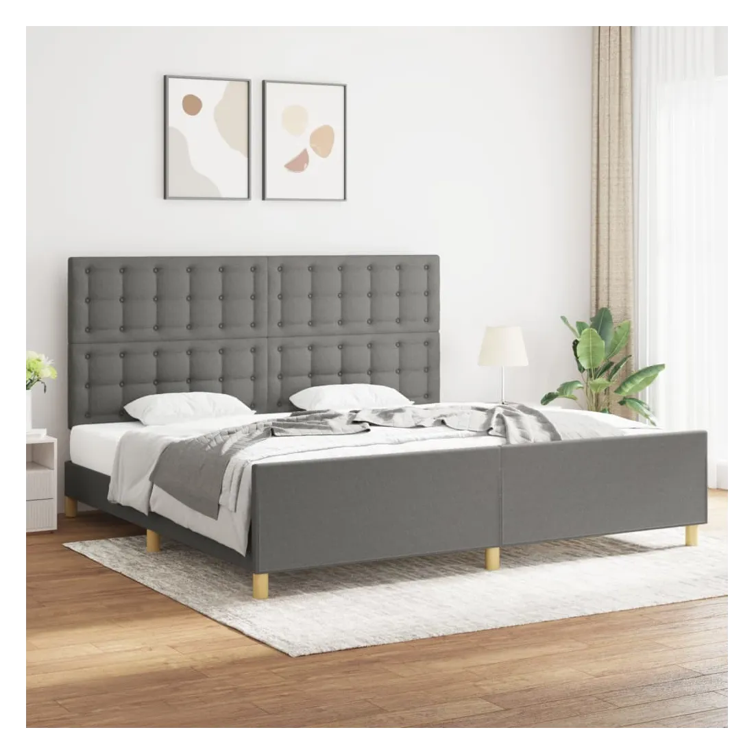 Cadre de lit sans matelas gris foncé 200x200 cm tissu