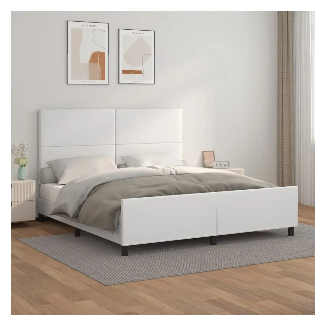Obtenez une meilleure nuit de sommeil reposante grâce à ce cadre de lit avec tête de lit ! Il est un supplément accueillant à toute chambre à coucher. Similicuir durable : le similicuir de qualité supérieure est un matériau très durable. Il est résistant aux taches, ce qui le rend facile à nettoyer avec un chiffon humide. La surface lisse donne également un aspect luxueux et la beauté du cuir véritable.Hauteur réglable : la tête de lit est réglable en hauteur selon vos préférences.Pieds de soutien : le lit est soutenu par des pieds robustes, qui assurent sa stabilité, sa sécurité et sa fermeté.Lattes de contreplaqué : les lattes de contreplaqué assurent une bonne répartition du poids, garantissant que le matelas reste en place à chaque torsion de votre corps pendant le sommeil.Excellent soutien : la tête de lit vous offre un excellent soutien du dos lorsque vous êtes assis dans votre lit pour lire ou regarder la télévision. Remarque :La livraison comprend uniquement un cadre de lit. Le matelas n'est pas inclus. Vous pouvez consulter notre boutique pour trouver les matelas assortis.Chaque produit est livré avec un manuel de montage dans la boîte pour un montage facile.