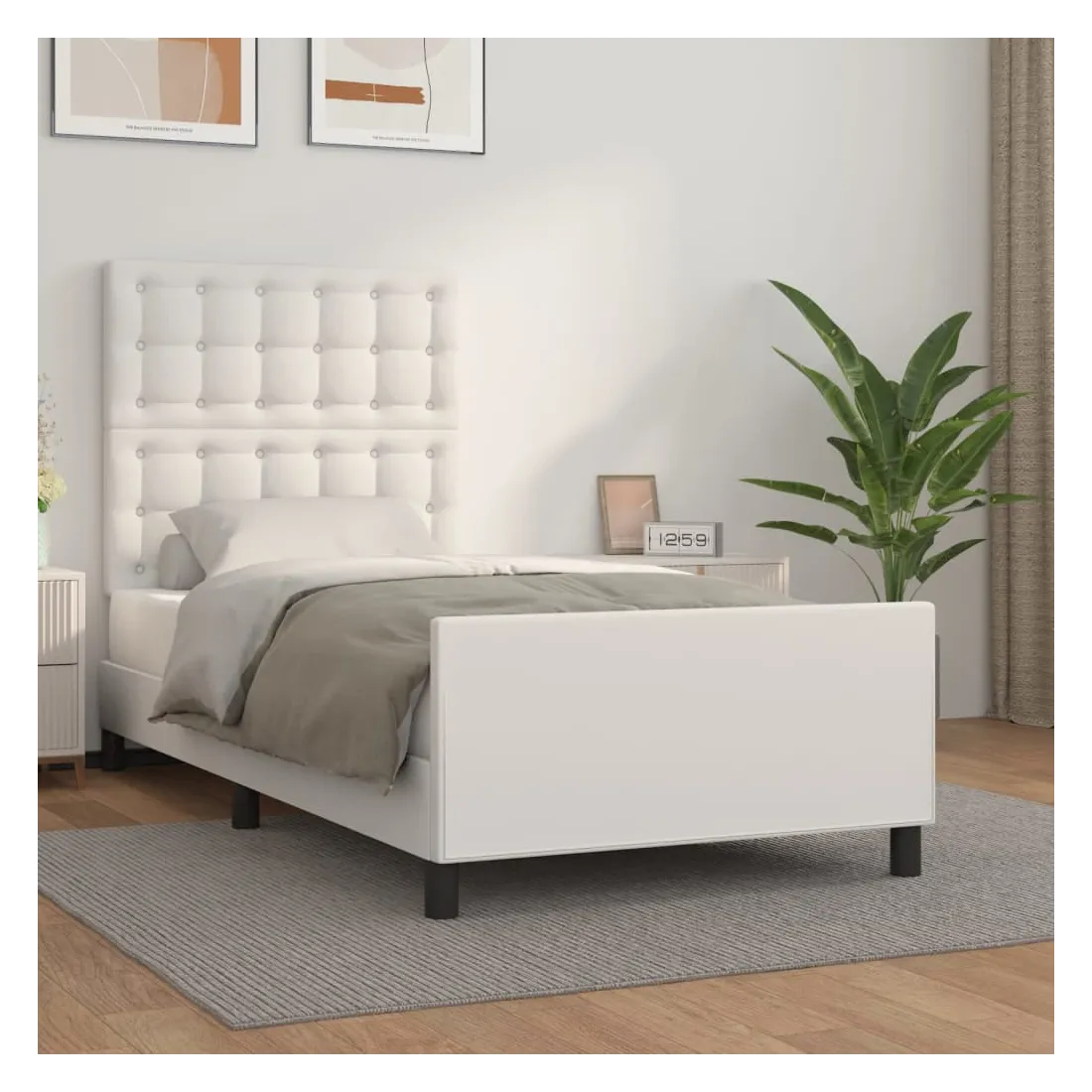 Obtenez une meilleure nuit de sommeil reposante grâce à ce cadre de lit avec tête de lit ! Il est un supplément accueillant à toute chambre à coucher. Similicuir durable : le similicuir de qualité supérieure est un matériau très durable. Il est résistant aux taches, ce qui le rend facile à nettoyer avec un chiffon humide. La surface lisse donne également un aspect luxueux et la beauté du cuir véritable.Hauteur réglable : la tête de lit est réglable en hauteur selon vos préférences.Pieds de soutien : le lit est soutenu par des pieds robustes, qui assurent sa stabilité, sa sécurité et sa fermeté.Lattes de contreplaqué : les lattes de contreplaqué assurent une bonne répartition du poids, garantissant que le matelas reste en place à chaque torsion de votre corps pendant le sommeil.Excellent soutien : la tête de lit vous offre un excellent soutien du dos lorsque vous êtes assis dans votre lit pour lire ou regarder la télévision. Remarque :La livraison comprend uniquement un cadre de lit. Le matelas n'est pas inclus. Vous pouvez consulter notre boutique pour trouver les matelas assortis.Chaque produit est livré avec un manuel de montage dans la boîte pour un montage facile.