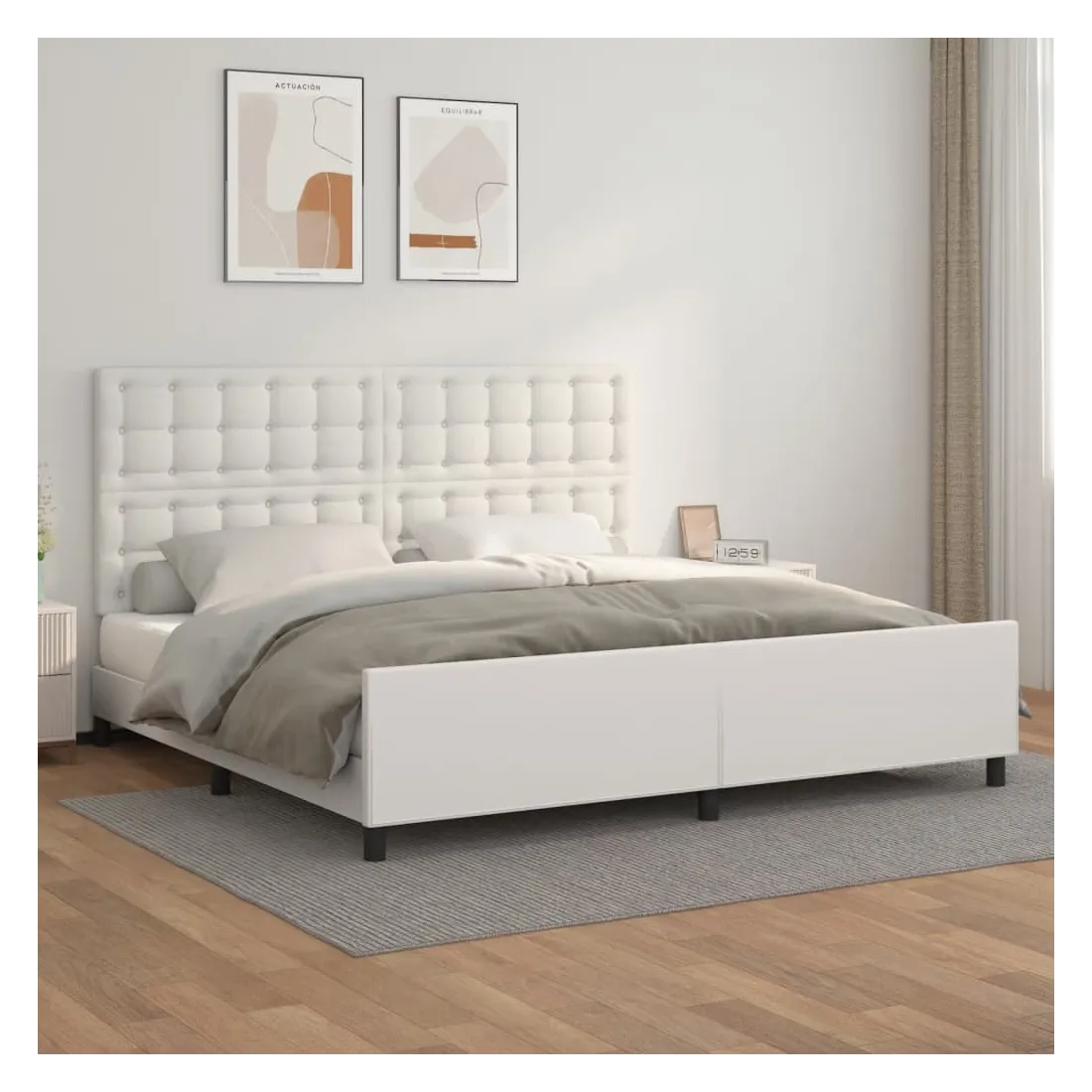 Obtenez une meilleure nuit de sommeil reposante grâce à ce cadre de lit avec tête de lit ! Il est un supplément accueillant à toute chambre à coucher. Similicuir durable : le similicuir de qualité supérieure est un matériau très durable. Il est résistant aux taches, ce qui le rend facile à nettoyer avec un chiffon humide. La surface lisse donne également un aspect luxueux et la beauté du cuir véritable.Hauteur réglable : la tête de lit est réglable en hauteur selon vos préférences.Pieds de soutien : le lit est soutenu par des pieds robustes, qui assurent sa stabilité, sa sécurité et sa fermeté.Lattes de contreplaqué : les lattes de contreplaqué assurent une bonne répartition du poids, garantissant que le matelas reste en place à chaque torsion de votre corps pendant le sommeil.Excellent soutien : la tête de lit vous offre un excellent soutien du dos lorsque vous êtes assis dans votre lit pour lire ou regarder la télévision. Remarque :La livraison comprend uniquement un cadre de lit. Le matelas n'est pas inclus. Vous pouvez consulter notre boutique pour trouver les matelas assortis.Chaque produit est livré avec un manuel de montage dans la boîte pour un montage facile.