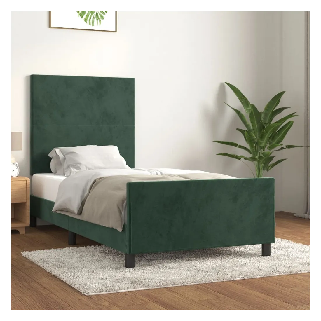 Obtenez une meilleure nuit de sommeil reposante grâce à ce cadre de lit avec tête de lit ! Il est un supplément accueillant à toute chambre à coucher. Velours doux : le velours est un tissu doux et luxueux qui se reconnaît à son tas dense de fibres uniformément coupées qui ont une touche lisse. Le tissu en velours présente un toucher doux distinctif, ce qui le rend confortable au toucher.Hauteur réglable : la tête de lit est réglable en hauteur selon vos préférences.Pieds de soutien : le lit est soutenu par des pieds robustes, qui assurent sa stabilité, sa sécurité et sa fermeté.Lattes de contreplaqué : les lattes de contreplaqué assurent une bonne répartition du poids, garantissant que le matelas reste en place à chaque torsion de votre corps pendant le sommeil.Excellent soutien : la tête de lit vous offre un excellent soutien du dos lorsque vous êtes assis dans votre lit pour lire ou regarder la télévision. Remarque :La livraison comprend uniquement un cadre de lit. Le matelas n'est pas inclus. Vous pouvez consulter notre boutique pour trouver les matelas assortis.Chaque produit est livré avec un manuel de montage dans la boîte pour un montage facile.