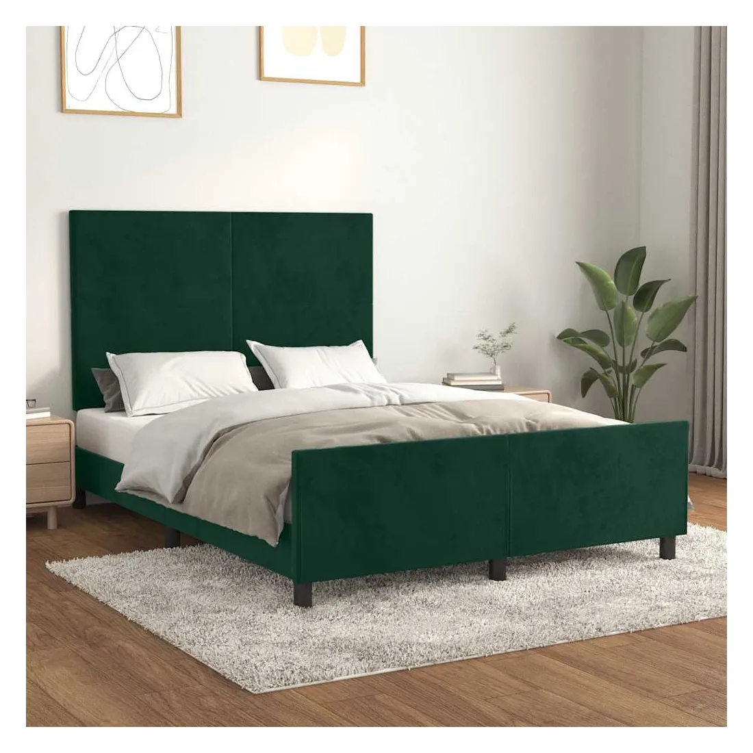 Obtenez une meilleure nuit de sommeil reposante grâce à ce cadre de lit avec tête de lit ! Il est un supplément accueillant à toute chambre à coucher. Velours doux : le velours est un tissu doux et luxueux qui se reconnaît à son tas dense de fibres uniformément coupées qui ont une touche lisse. Le tissu en velours présente un toucher doux distinctif, ce qui le rend confortable au toucher.Hauteur réglable : la tête de lit est réglable en hauteur selon vos préférences.Pieds de soutien : le lit est soutenu par des pieds robustes, qui assurent sa stabilité, sa sécurité et sa fermeté.Lattes de contreplaqué : les lattes de contreplaqué assurent une bonne répartition du poids, garantissant que le matelas reste en place à chaque torsion de votre corps pendant le sommeil.Excellent soutien : la tête de lit vous offre un excellent soutien du dos lorsque vous êtes assis dans votre lit pour lire ou regarder la télévision. Remarque :La livraison comprend uniquement un cadre de lit. Le matelas n'est pas inclus. Vous pouvez consulter notre boutique pour trouver les matelas assortis.Chaque produit est livré avec un manuel de montage dans la boîte pour un montage facile.