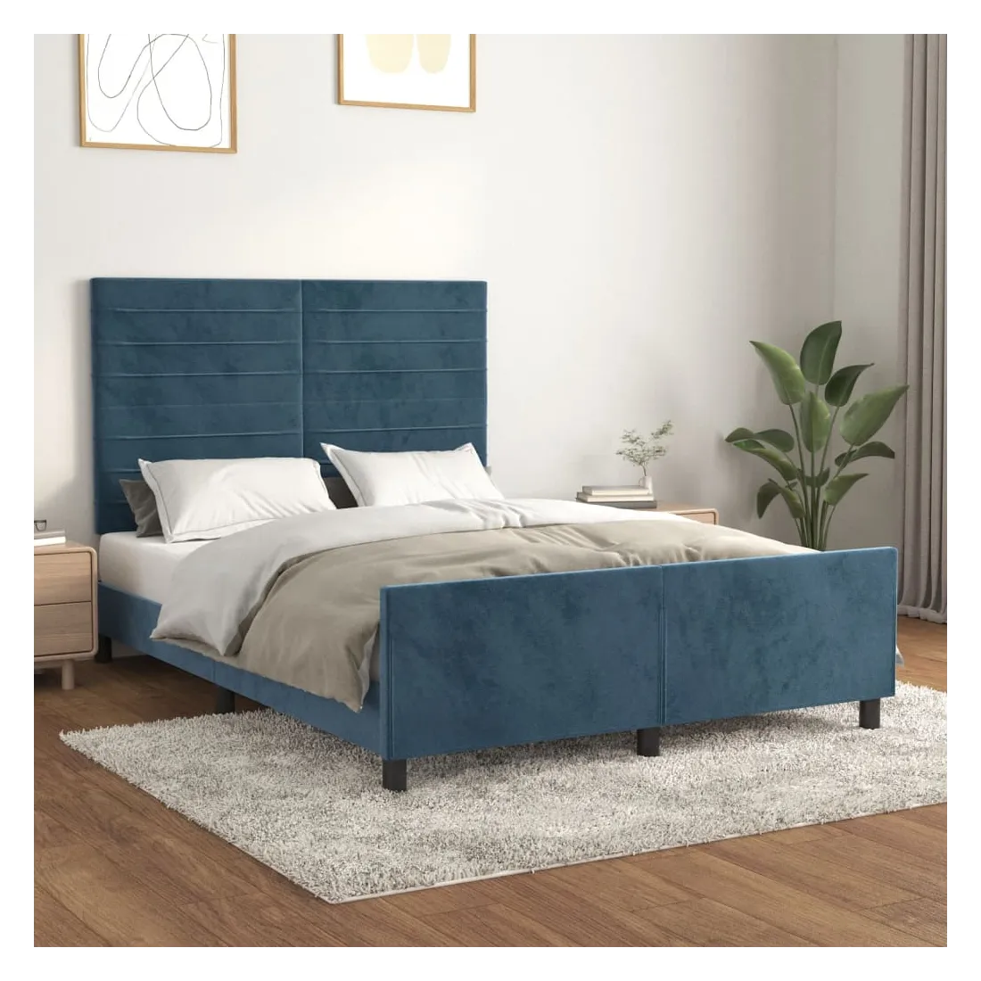 Obtenez une meilleure nuit de sommeil reposante grâce à ce cadre de lit avec tête de lit ! Il est un supplément accueillant à toute chambre à coucher. Velours doux : le velours est un tissu doux et luxueux qui se reconnaît à son tas dense de fibres uniformément coupées qui ont une touche lisse. Le tissu en velours présente un toucher doux distinctif, ce qui le rend confortable au toucher.Hauteur réglable : la tête de lit est réglable en hauteur selon vos préférences.Pieds de soutien : le lit est soutenu par des pieds robustes, qui assurent sa stabilité, sa sécurité et sa fermeté.Lattes de contreplaqué : les lattes de contreplaqué assurent une bonne répartition du poids, garantissant que le matelas reste en place à chaque torsion de votre corps pendant le sommeil.Excellent soutien : la tête de lit vous offre un excellent soutien du dos lorsque vous êtes assis dans votre lit pour lire ou regarder la télévision. Remarque :La livraison comprend uniquement un cadre de lit. Le matelas n'est pas inclus. Vous pouvez consulter notre boutique pour trouver les matelas assortis.Chaque produit est livré avec un manuel de montage dans la boîte pour un montage facile.