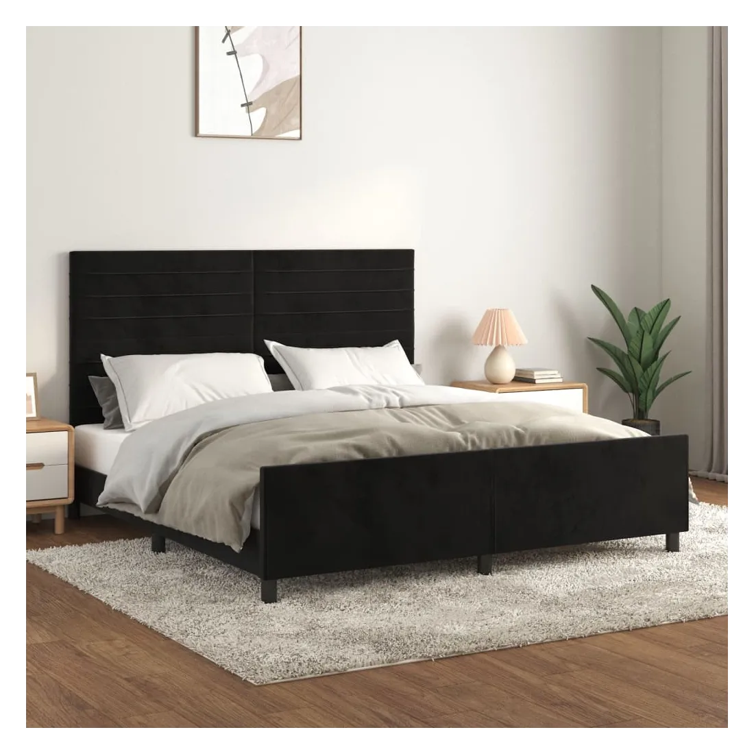 Obtenez une meilleure nuit de sommeil reposante grâce à ce cadre de lit avec tête de lit ! Il est un supplément accueillant à toute chambre à coucher. Velours doux : le velours est un tissu doux et luxueux qui se reconnaît à son tas dense de fibres uniformément coupées qui ont une touche lisse. Le tissu en velours présente un toucher doux distinctif, ce qui le rend confortable au toucher.Hauteur réglable : la tête de lit est réglable en hauteur selon vos préférences.Pieds de soutien : le lit est soutenu par des pieds robustes, qui assurent sa stabilité, sa sécurité et sa fermeté.Lattes de contreplaqué : les lattes de contreplaqué assurent une bonne répartition du poids, garantissant que le matelas reste en place à chaque torsion de votre corps pendant le sommeil.Excellent soutien : la tête de lit vous offre un excellent soutien du dos lorsque vous êtes assis dans votre lit pour lire ou regarder la télévision. Remarque :La livraison comprend uniquement un cadre de lit. Le matelas n'est pas inclus. Vous pouvez consulter notre boutique pour trouver les matelas assortis.Chaque produit est livré avec un manuel de montage dans la boîte pour un montage facile.