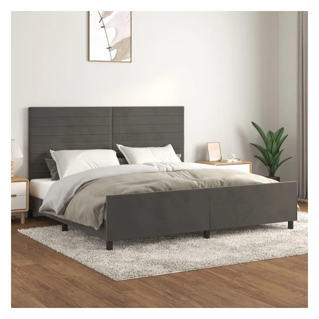 Cadre de lit sans matelas gris foncé 200x200 cm velours
