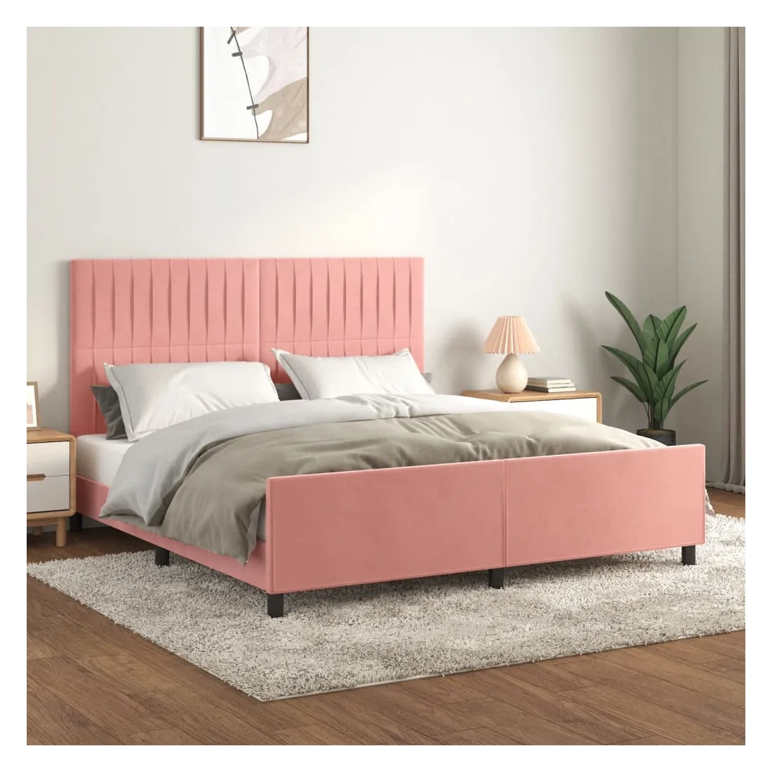 Obtenez une meilleure nuit de sommeil reposante grâce à ce cadre de lit avec tête de lit ! Il est un supplément accueillant à toute chambre à coucher. Velours doux : le velours est un tissu doux et luxueux qui se reconnaît à son tas dense de fibres uniformément coupées qui ont une touche lisse. Le tissu en velours présente un toucher doux distinctif, ce qui le rend confortable au toucher.Hauteur réglable : la tête de lit est réglable en hauteur selon vos préférences.Pieds de soutien : le lit est soutenu par des pieds robustes, qui assurent sa stabilité, sa sécurité et sa fermeté.Lattes de contreplaqué : les lattes de contreplaqué assurent une bonne répartition du poids, garantissant que le matelas reste en place à chaque torsion de votre corps pendant le sommeil.Excellent soutien : la tête de lit vous offre un excellent soutien du dos lorsque vous êtes assis dans votre lit pour lire ou regarder la télévision. Remarque :La livraison comprend uniquement un cadre de lit. Le matelas n'est pas inclus. Vous pouvez consulter notre boutique pour trouver les matelas assortis.Chaque produit est livré avec un manuel de montage dans la boîte pour un montage facile.
