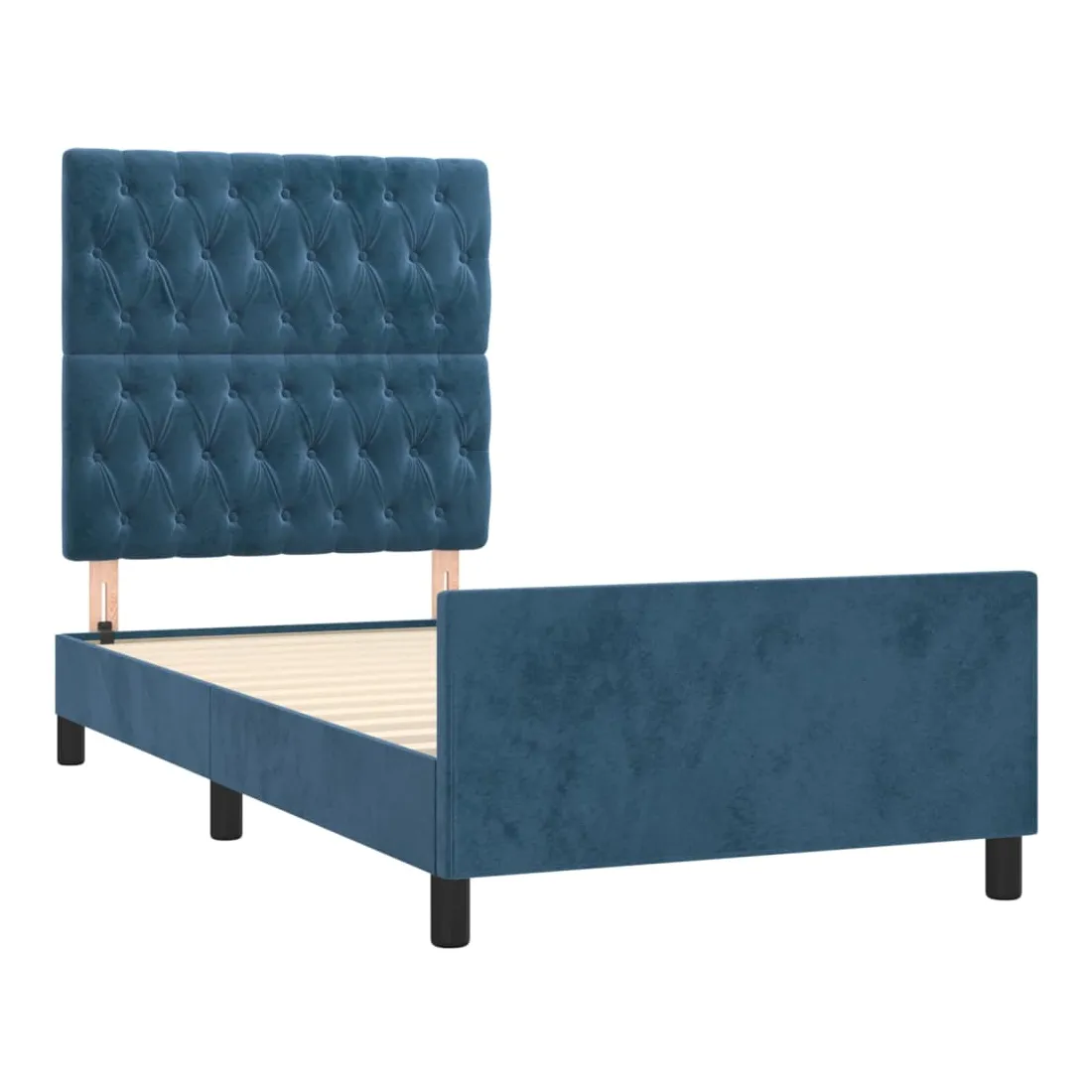 Cadre de lit sans matelas bleu foncé 90x200 cm velours
