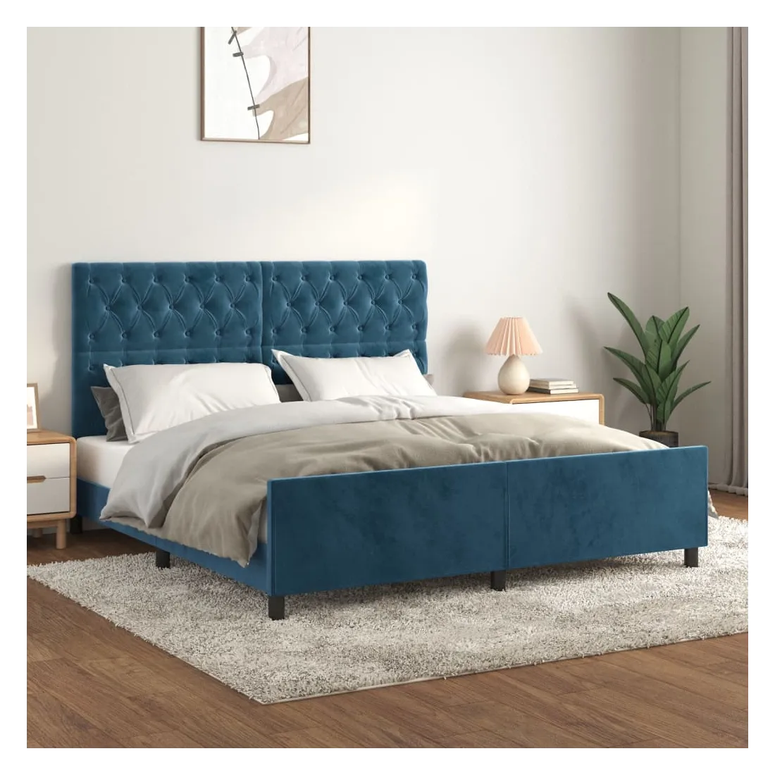 Obtenez une meilleure nuit de sommeil reposante grâce à ce cadre de lit avec tête de lit ! Il est un supplément accueillant à toute chambre à coucher. Velours doux : le velours est un tissu doux et luxueux qui se reconnaît à son tas dense de fibres uniformément coupées qui ont une touche lisse. Le tissu en velours présente un toucher doux distinctif, ce qui le rend confortable au toucher.Hauteur réglable : la tête de lit est réglable en hauteur selon vos préférences.Pieds de soutien : le lit est soutenu par des pieds robustes, qui assurent sa stabilité, sa sécurité et sa fermeté.Lattes de contreplaqué : les lattes de contreplaqué assurent une bonne répartition du poids, garantissant que le matelas reste en place à chaque torsion de votre corps pendant le sommeil.Excellent soutien : la tête de lit vous offre un excellent soutien du dos lorsque vous êtes assis dans votre lit pour lire ou regarder la télévision. Remarque :La livraison comprend uniquement un cadre de lit. Le matelas n'est pas inclus. Vous pouvez consulter notre boutique pour trouver les matelas assortis.Chaque produit est livré avec un manuel de montage dans la boîte pour un montage facile.