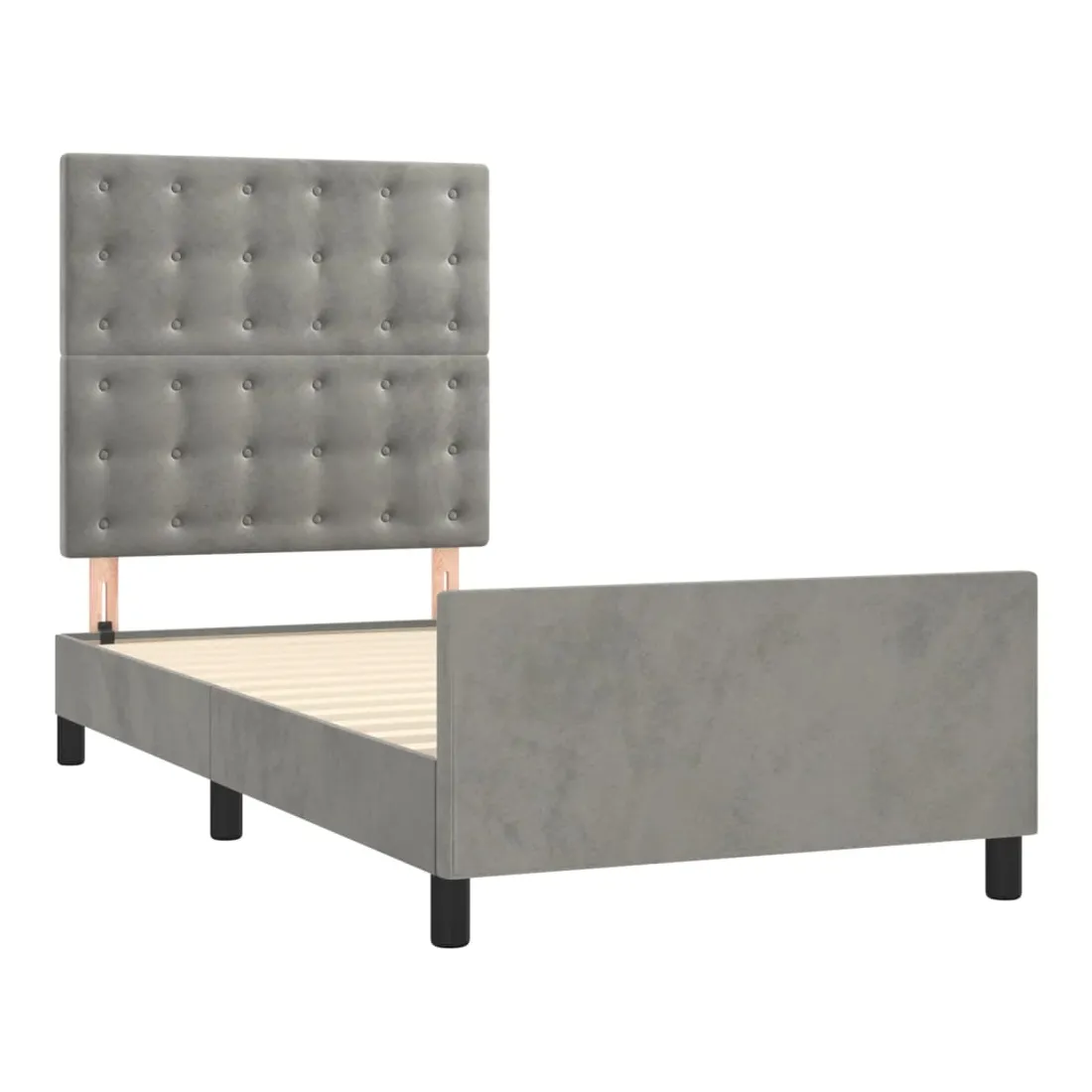 Obtenez une meilleure nuit de sommeil reposante grâce à ce cadre de lit avec tête de lit ! Il est un supplément accueillant à toute chambre à coucher. Velours doux : le velours est un tissu doux et luxueux qui se reconnaît à son tas dense de fibres uniformément coupées qui ont une touche lisse. Le tissu en velours présente un toucher doux distinctif, ce qui le rend confortable au toucher.Hauteur réglable : la tête de lit est réglable en hauteur selon vos préférences.Pieds de soutien : le lit est soutenu par des pieds robustes, qui assurent sa stabilité, sa sécurité et sa fermeté.Lattes de contreplaqué : les lattes de contreplaqué assurent une bonne répartition du poids, garantissant que le matelas reste en place à chaque torsion de votre corps pendant le sommeil.Excellent soutien : la tête de lit vous offre un excellent soutien du dos lorsque vous êtes assis dans votre lit pour lire ou regarder la télévision. Remarque :La livraison comprend uniquement un cadre de lit. Le matelas n'est pas inclus. Vous pouvez consulter notre boutique pour trouver les matelas assortis.Chaque produit est livré avec un manuel de montage dans la boîte pour un montage facile.