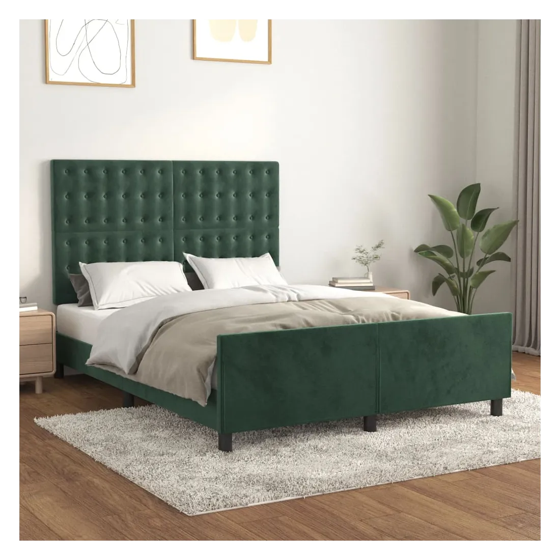 Cadre de lit sans matelas vert foncé 140x200 cm velours