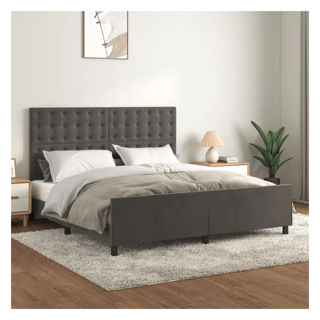 Cadre de lit sans matelas gris foncé 160x200 cm velours