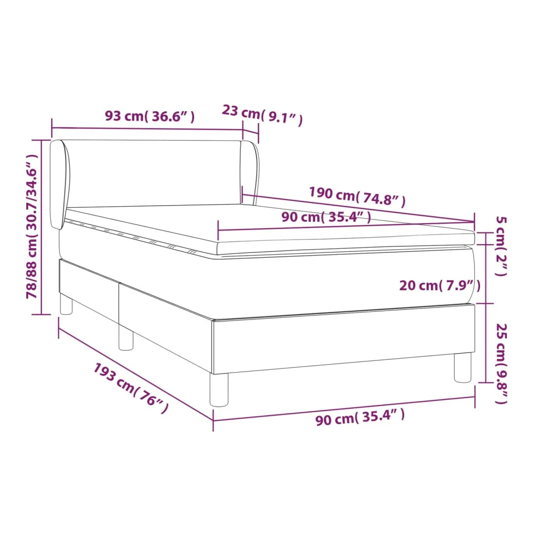 • Dimensions : 90 x 190 x 20 cm (l x L x H)