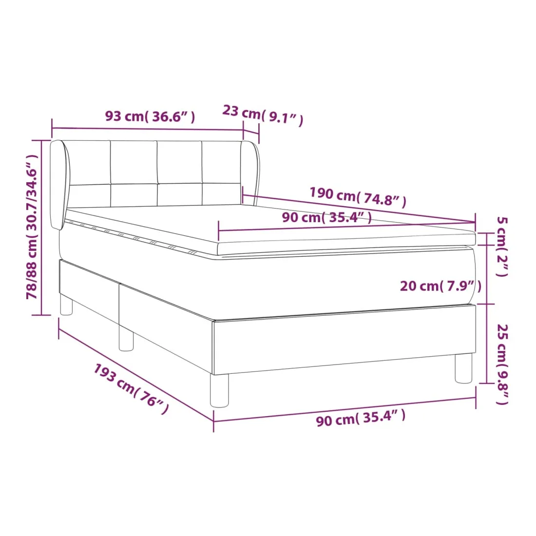 - Dimensions : 90 x 190 x 20 cm (l x L x H)