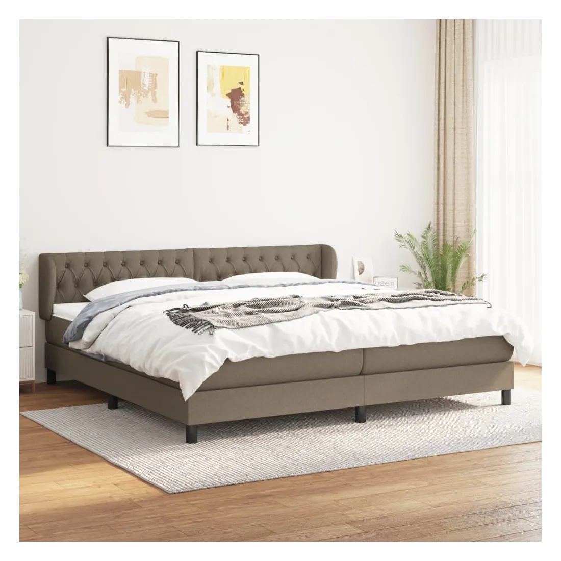 Sommier à lattes de lit avec matelas Taupe 200x200 cm Tissu