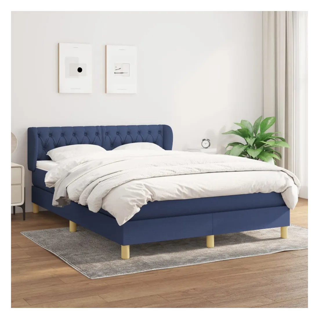 Sommier à lattes de lit avec matelas Bleu 140x190 cm Tissu