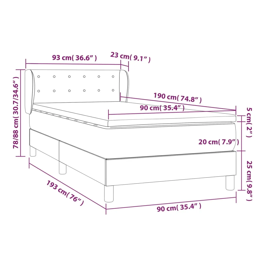Sommier à lattes de lit avec matelas Noir 90x190 cm Tissu