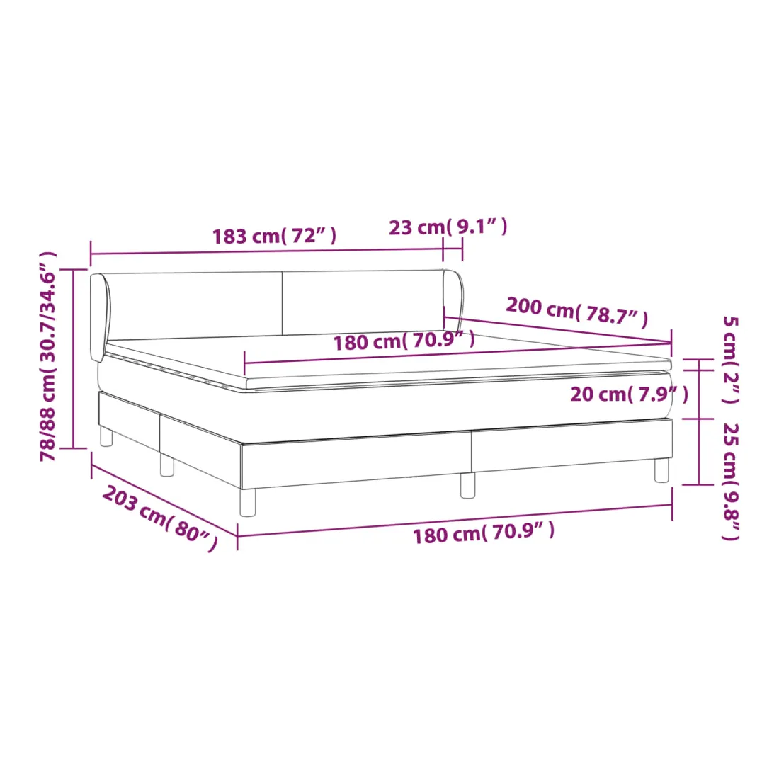 Utilisez ce lit à sommier pour profiter d'une nuit de sommeil réparatrice ! Il vous offre une relaxation maximale et un sommeil agréable. Velours doux : le velours est un tissu doux et luxueux qui se reconnaît à son tas dense de fibres uniformément coupées qui ont une touche lisse. Le tissu en velours présente un toucher doux distinctif, ce qui le rend confortable au toucher.Tête de lit pratique : la tête de lit est réglable en hauteur selon vos préférences. La tête de lit vous offre un excellent soutien du dos lorsque vous êtes assis dans votre lit pour lire ou regarder la télévision.Matelas à ressorts ensachés : le ressort ensaché individuel intégré est connu pour sa très haute qualité tout en assurant un haut niveau de durabilité et d'adaptabilité. Il peut absorber efficacement le bruit et les chocs causés par les sauts et les rotations.Support moyen-dur : ce matelas de lit offre une stabilité accrue et juste le niveau de fermeté sans sacrifier le confort. Il est donc idéal pour les personnes qui dorment sur le dos ou sur le ventre.Protège-matelas doux pour la peau : le protège-matelas est recouvert d'un tissu résistant et doux pour la peau, ce qui le rend souple et confortable. Remarque :Pour des raisons d'hygiène, le matelas ne peut pas être retourné si l'emballage est retiré ou ouvert.Chaque produit est livré avec un manuel de montage dans la boîte pour un montage facile.