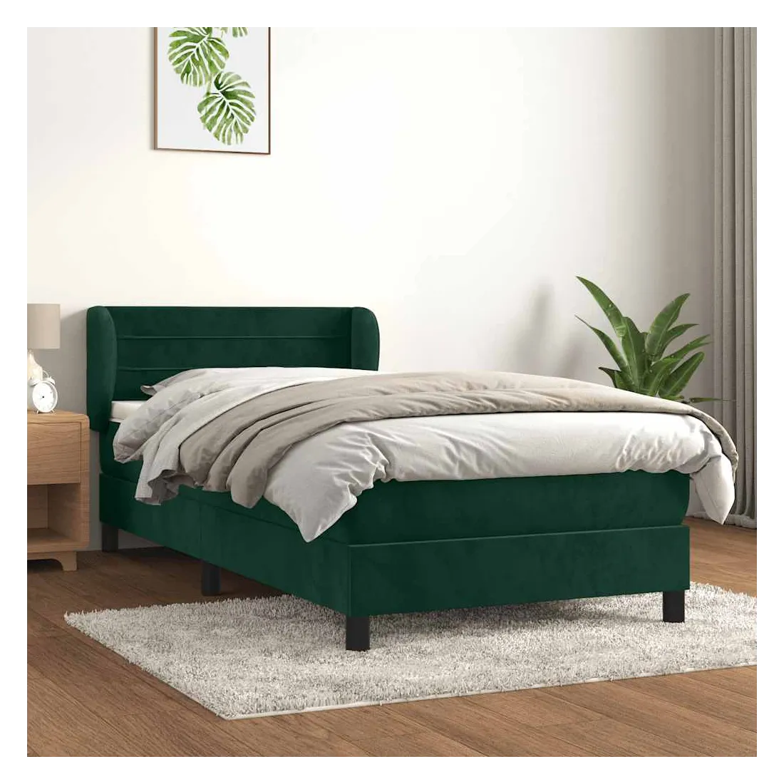 Utilisez ce lit à sommier pour profiter d'une nuit de sommeil réparatrice ! Il vous offre une relaxation maximale et un sommeil agréable. Velours doux : le velours est un tissu doux et luxueux qui se reconnaît à son tas dense de fibres uniformément coupées qui ont une touche lisse. Le tissu en velours présente un toucher doux distinctif, ce qui le rend confortable au toucher.Tête de lit pratique : la tête de lit est réglable en hauteur selon vos préférences. La tête de lit vous offre un excellent soutien du dos lorsque vous êtes assis dans votre lit pour lire ou regarder la télévision.Matelas à ressorts ensachés : le ressort ensaché individuel intégré est connu pour sa très haute qualité tout en assurant un haut niveau de durabilité et d'adaptabilité. Il peut absorber efficacement le bruit et les chocs causés par les sauts et les rotations.Support moyen-dur : ce matelas de lit offre une stabilité accrue et juste le niveau de fermeté sans sacrifier le confort. Il est donc idéal pour les personnes qui dorment sur le dos ou sur le ventre.Protège-matelas doux pour la peau : le protège-matelas est recouvert d'un tissu résistant et doux pour la peau, ce qui le rend souple et confortable. Remarque :Pour des raisons d'hygiène, le matelas ne peut pas être retourné si l'emballage est retiré ou ouvert.Chaque produit est livré avec un manuel de montage dans la boîte pour un montage facile.