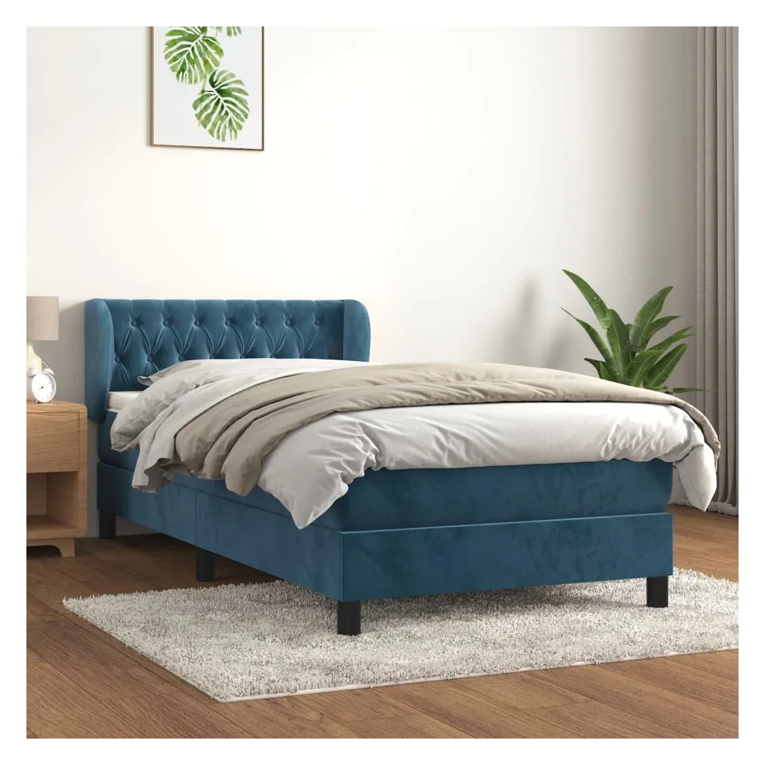 Utilisez ce lit à sommier pour profiter d'une nuit de sommeil réparatrice ! Il vous offre une relaxation maximale et un sommeil agréable. Velours doux : le velours est un tissu doux et luxueux qui se reconnaît à son tas dense de fibres uniformément coupées qui ont une touche lisse. Le tissu en velours présente un toucher doux distinctif, ce qui le rend confortable au toucher.Tête de lit pratique : la tête de lit est réglable en hauteur selon vos préférences. La tête de lit vous offre un excellent soutien du dos lorsque vous êtes assis dans votre lit pour lire ou regarder la télévision.Matelas à ressorts ensachés : le ressort ensaché individuel intégré est connu pour sa très haute qualité tout en assurant un haut niveau de durabilité et d'adaptabilité. Il peut absorber efficacement le bruit et les chocs causés par les sauts et les rotations.Support moyen-dur : ce matelas de lit offre une stabilité accrue et juste le niveau de fermeté sans sacrifier le confort. Il est donc idéal pour les personnes qui dorment sur le dos ou sur le ventre.Protège-matelas doux pour la peau : le protège-matelas est recouvert d'un tissu résistant et doux pour la peau, ce qui le rend souple et confortable. Remarque :Pour des raisons d'hygiène, le matelas ne peut pas être retourné si l'emballage est retiré ou ouvert.Chaque produit est livré avec un manuel de montage dans la boîte pour un montage facile.