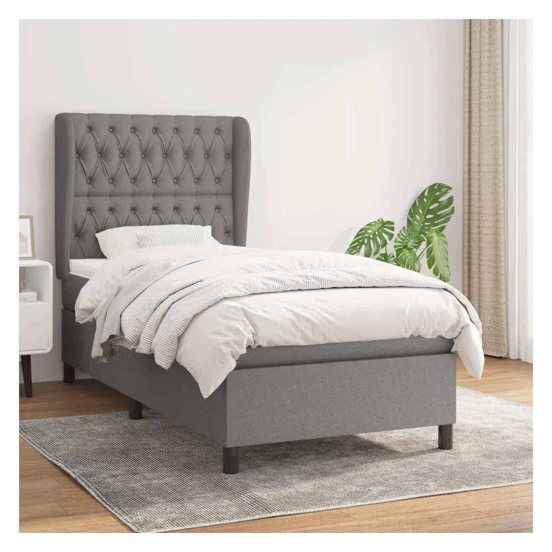 Sommier à lattes de lit avec matelas Gris foncé 90x200 cm Tissu