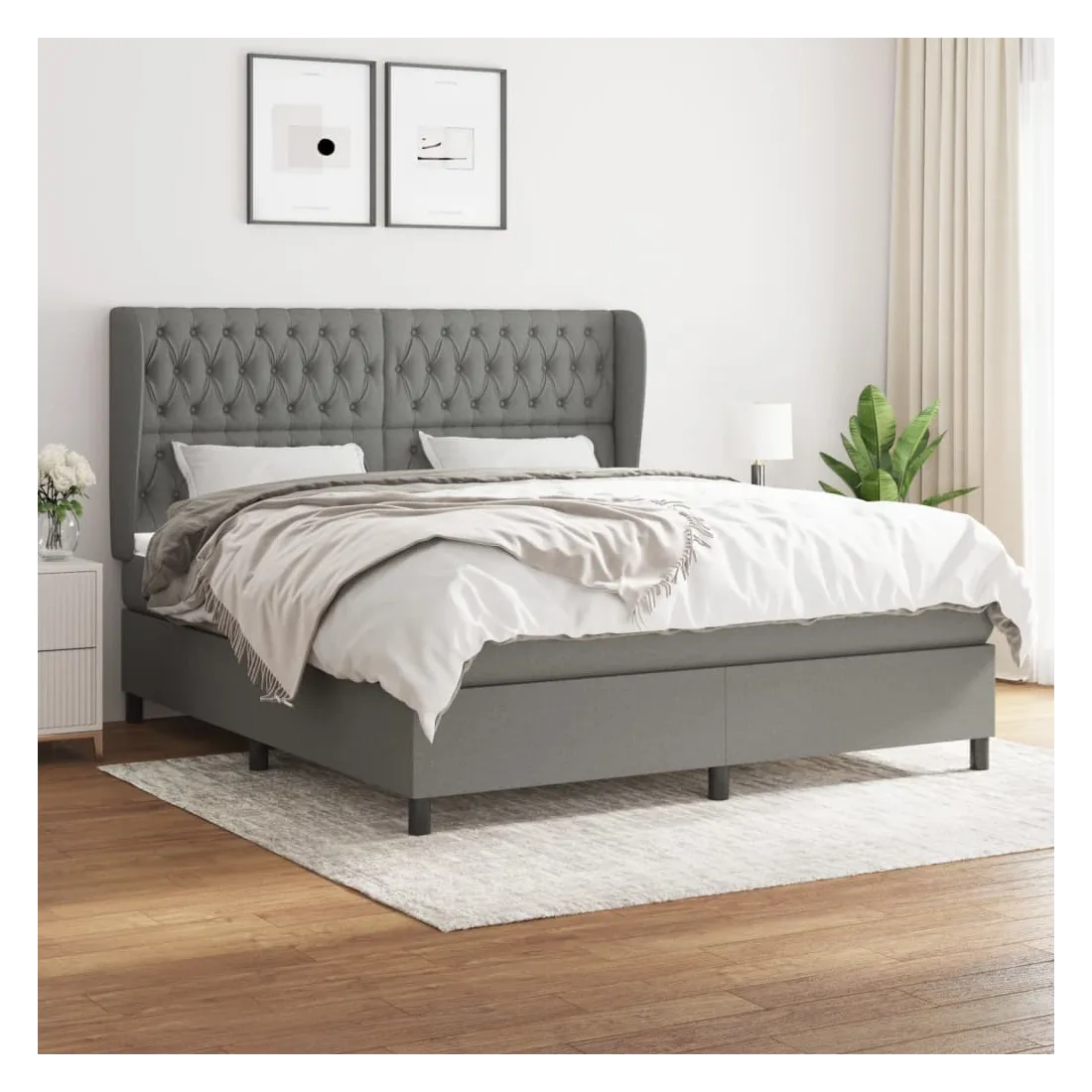 Sommier à lattes de lit avec matelas Gris foncé 180x200cm Tissu