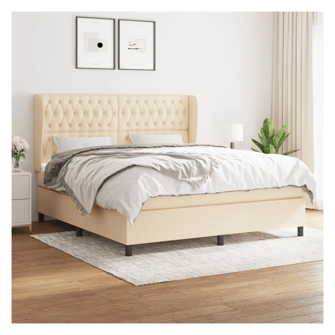 Sommier à lattes de lit avec matelas Crème 180x200 cm Tissu