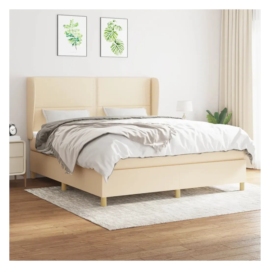 Sommier à lattes de lit avec matelas Crème 180x200 cm Tissu