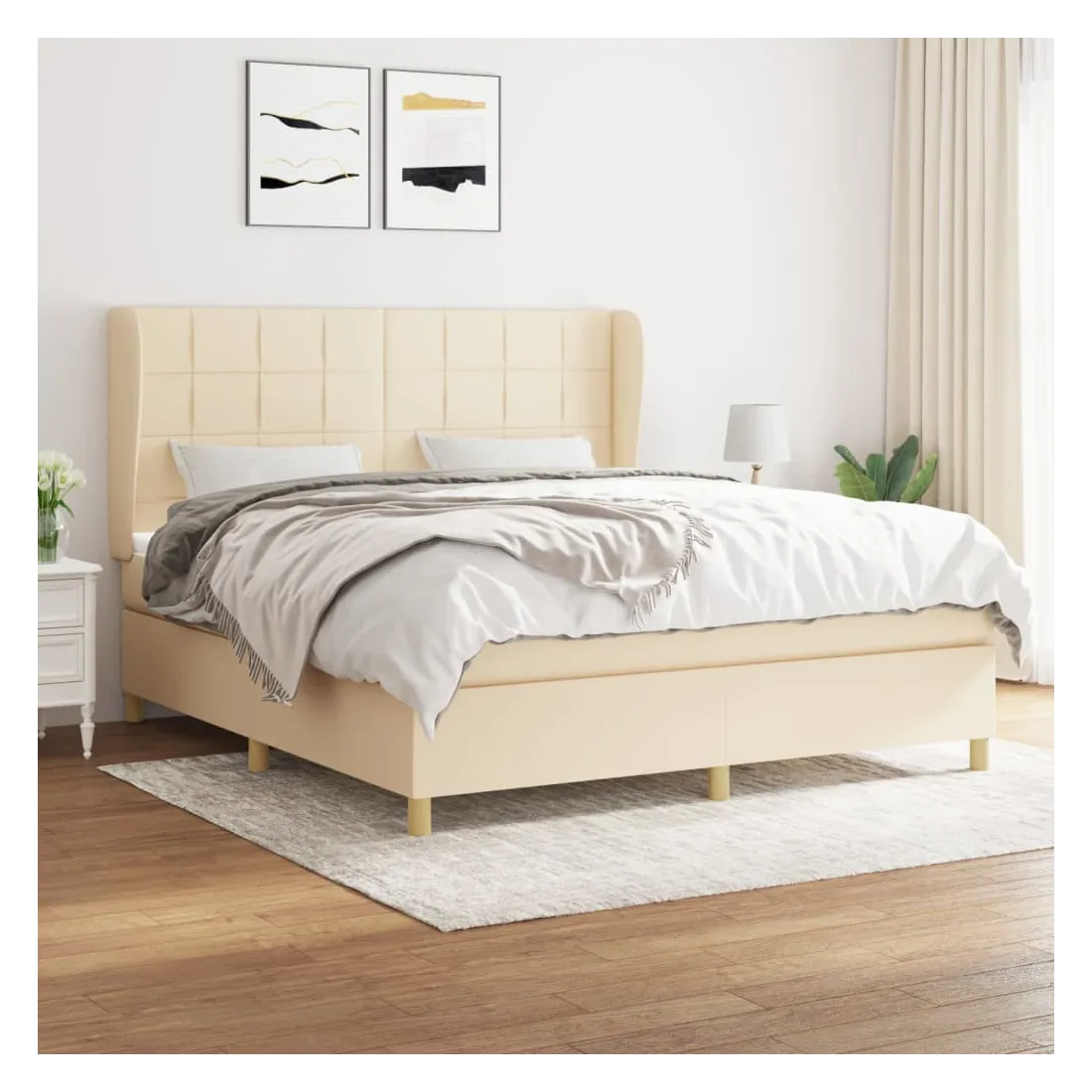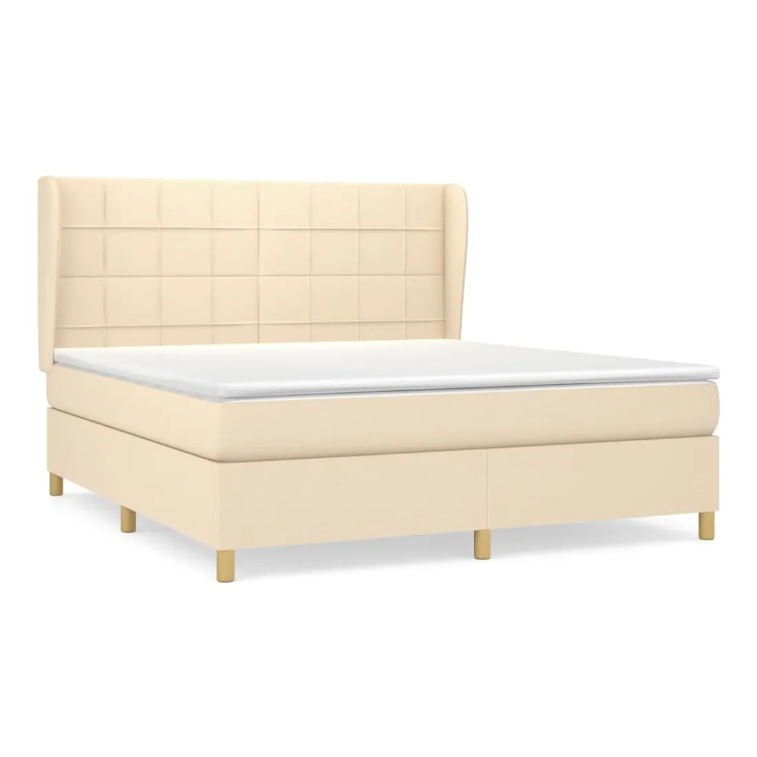 Sommier à lattes de lit avec matelas Crème 160x200 cm Tissu