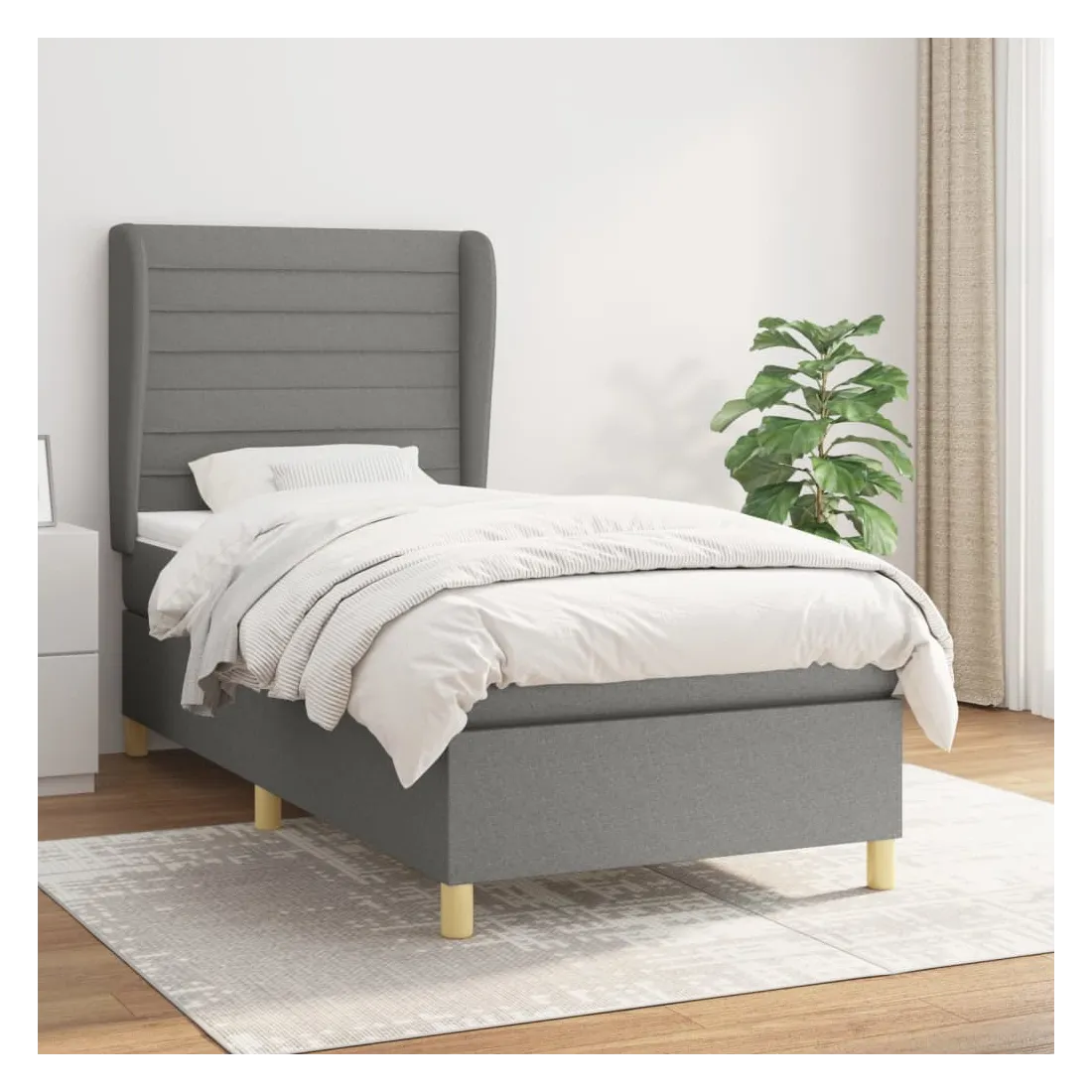 Sommier à lattes de lit avec matelas Gris foncé 100x200cm Tissu