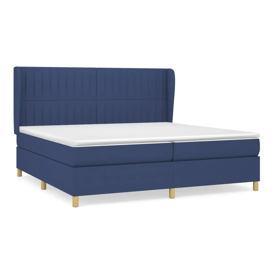 Sommier à lattes de lit avec matelas Bleu 200x200 cm Tissu