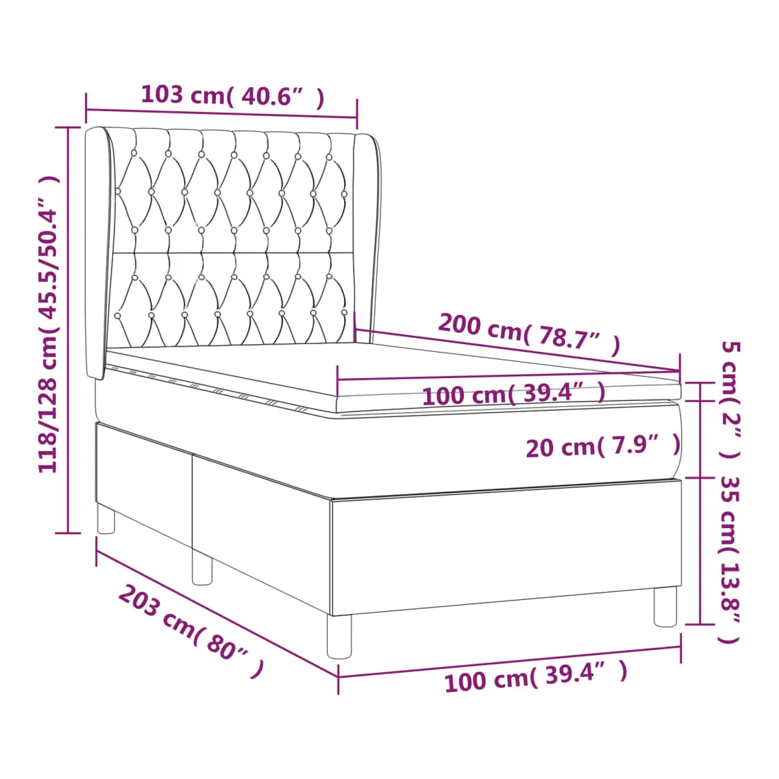 - Dimensions : 203 x 103 x 118/128 cm (L x l x H)