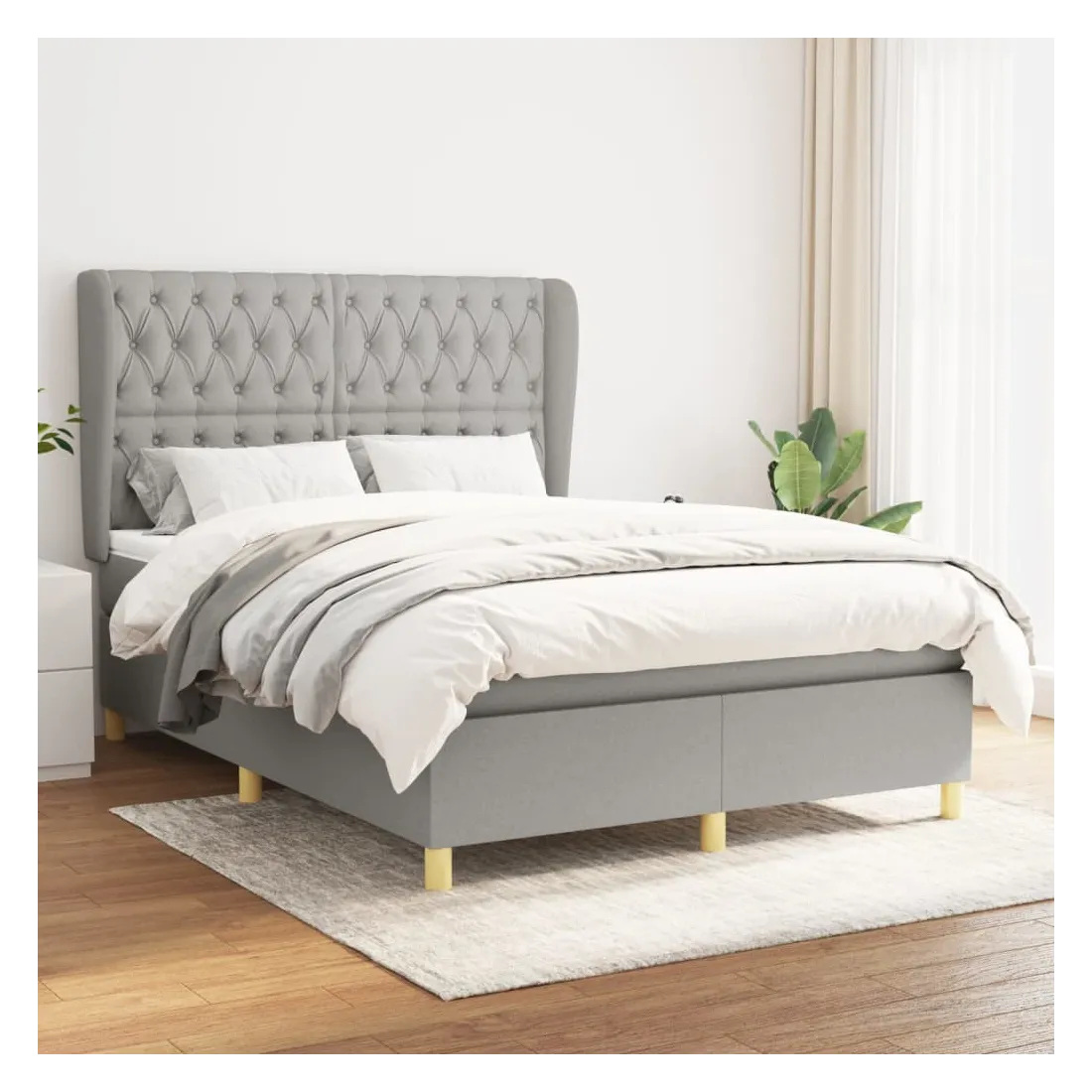Sommier à lattes de lit avec matelas Gris clair 140x190cm Tissu