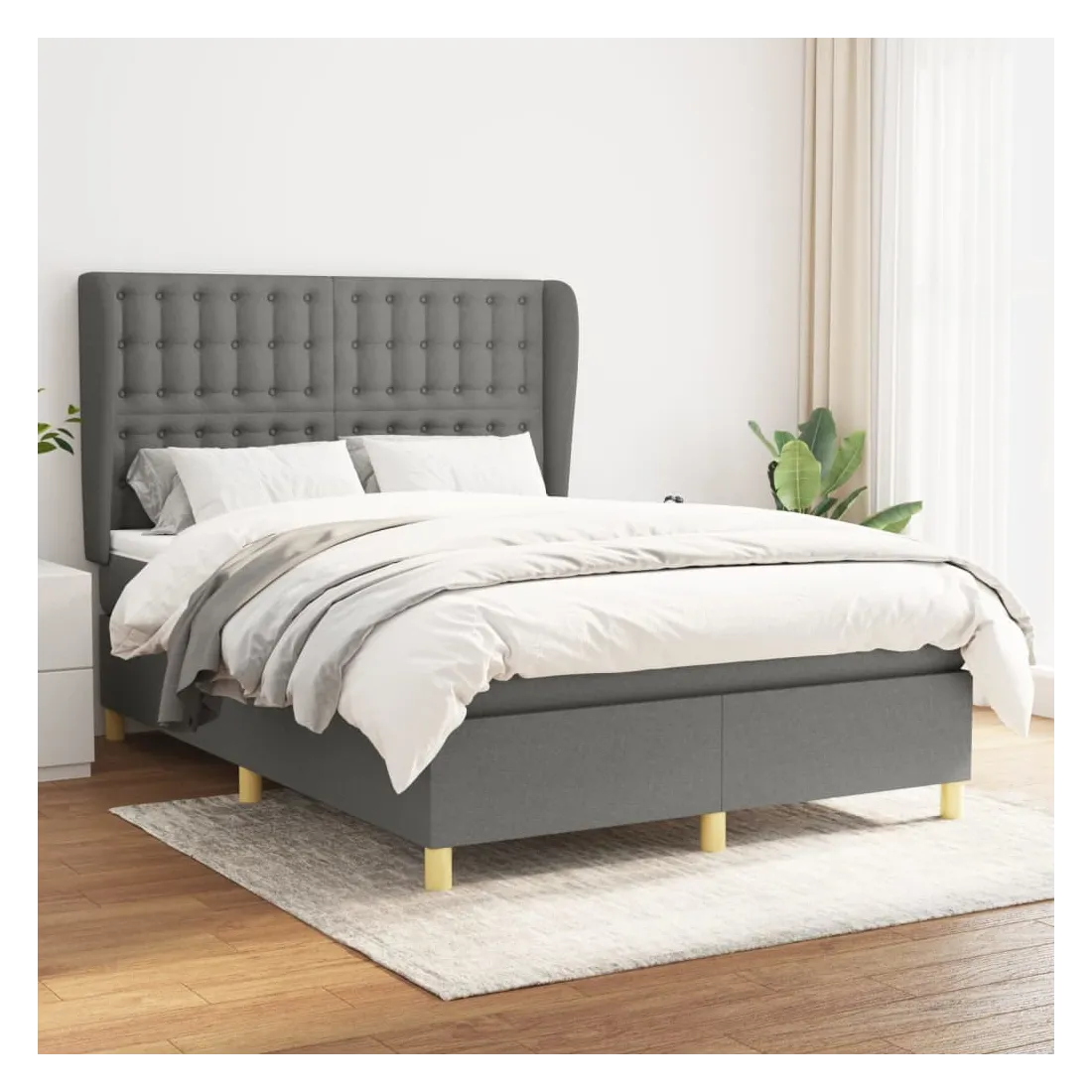 Sommier à lattes de lit avec matelas Gris foncé 140x200cm Tissu