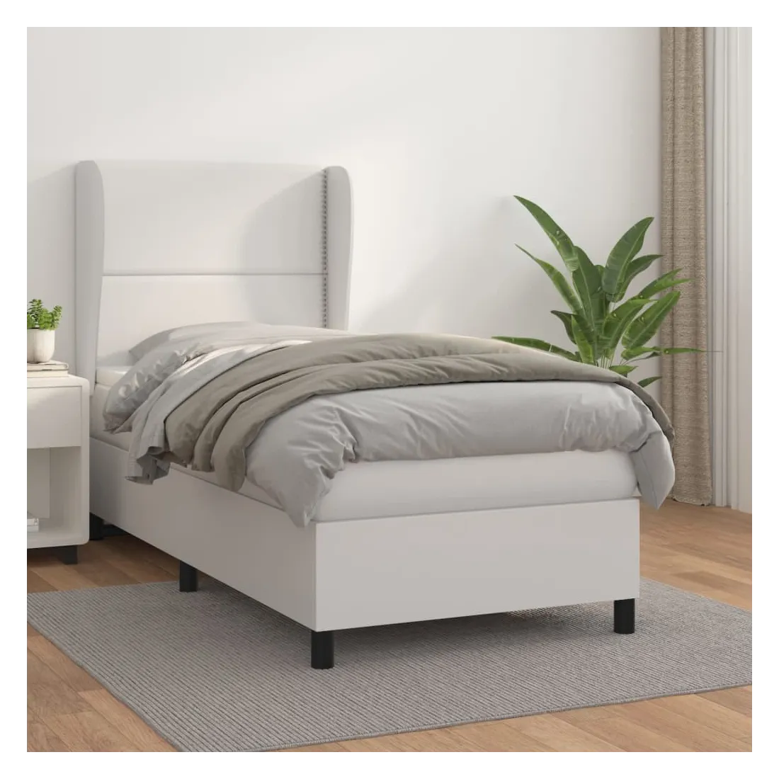 Sommier à lattes de lit avec matelas Blanc 90x200 cm Similicuir