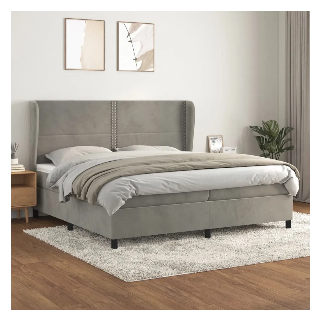 Utilisez ce lit à sommier pour profiter d'une nuit de sommeil réparatrice ! Il vous offre une relaxation maximale et un sommeil agréable. Velours doux : le velours est un tissu doux et luxueux qui se reconnaît à son tas dense de fibres uniformément coupées qui ont une touche lisse. Le tissu en velours présente un toucher doux distinctif, ce qui le rend confortable au toucher. Tête de lit pratique : la tête de lit est réglable en hauteur selon vos préférences. La tête de lit vous offre un excellent soutien du dos lorsque vous êtes assis dans votre lit pour lire ou regarder la télévision. Matelas à ressorts ensachés : le ressort ensaché individuel intégré est connu pour sa très haute qualité tout en assurant un haut niveau de durabilité et d'adaptabilité. Il peut absorber efficacement le