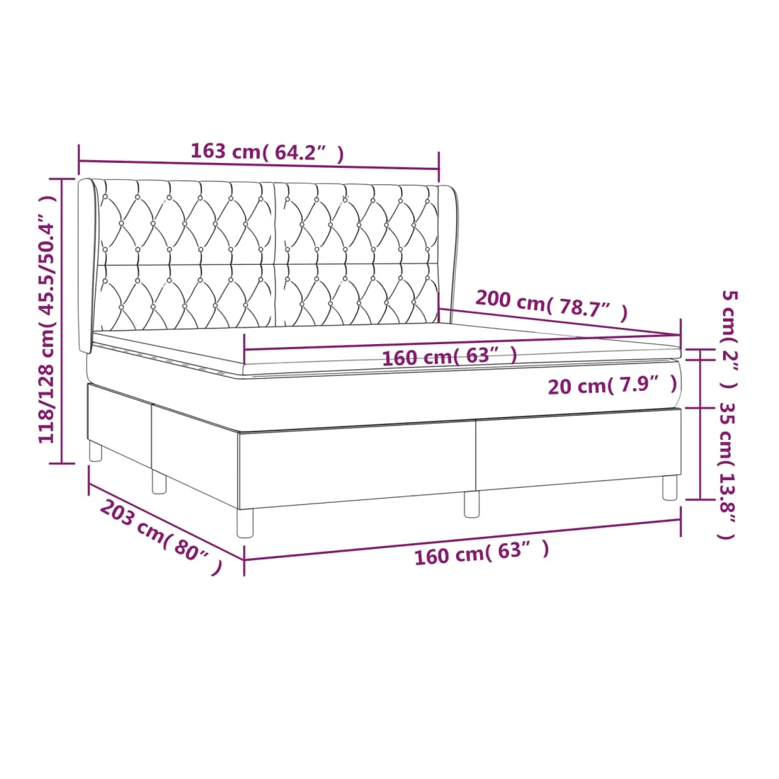 Sommier à lattes de lit et matelas Gris foncé 160x200cm Velours