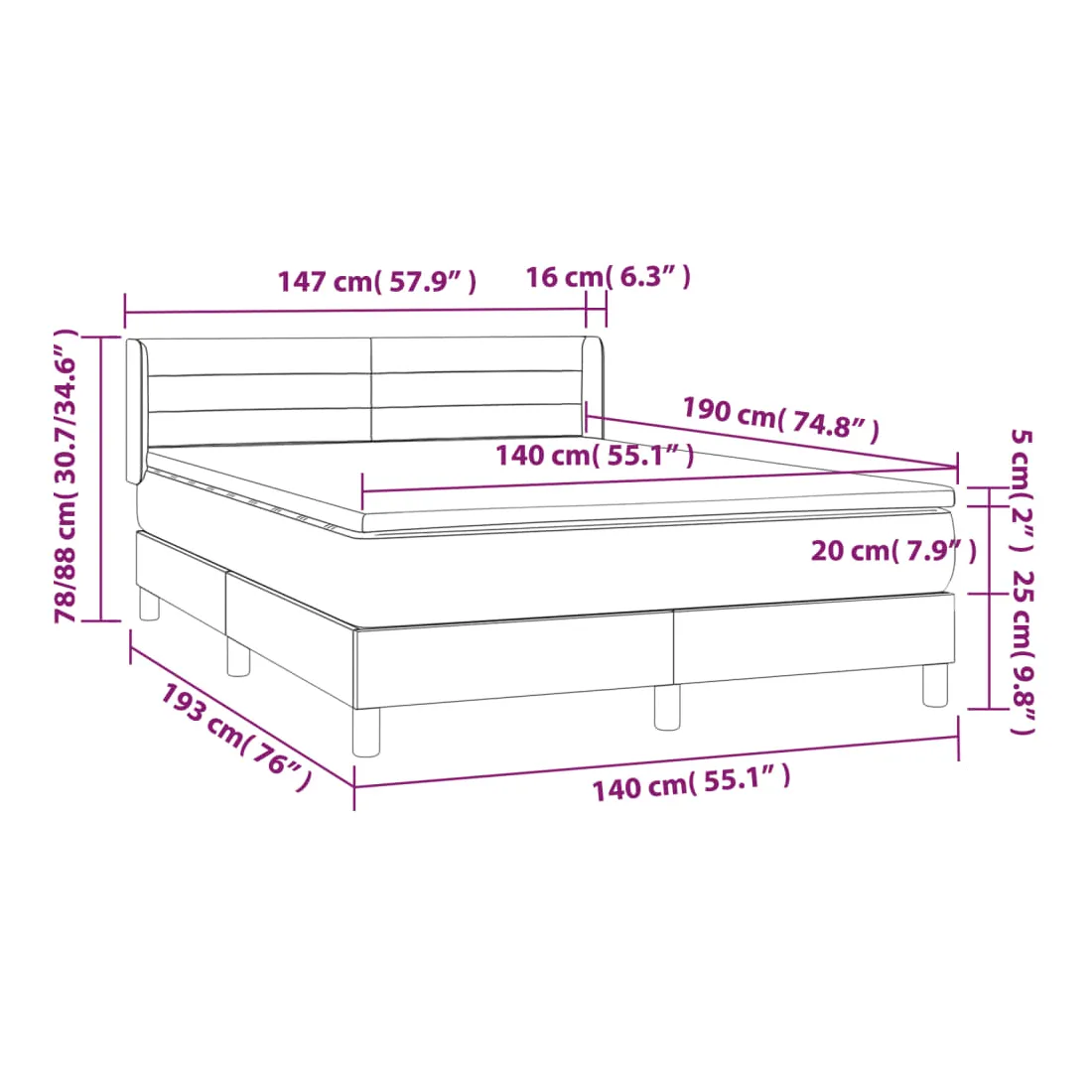 Sommier à lattes de lit avec matelas Gris clair 140x190cm Tissu