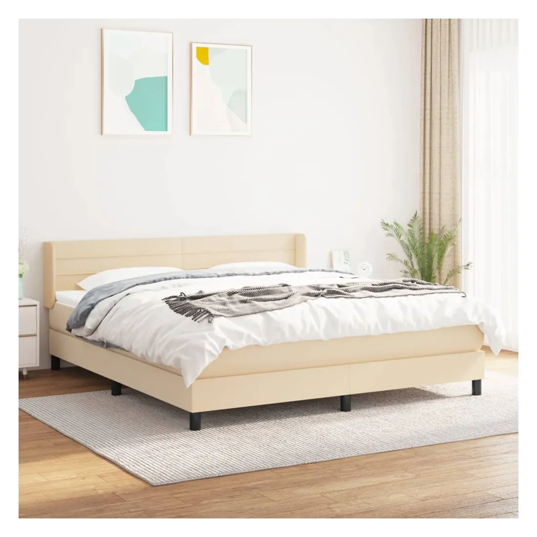 Sommier à lattes de lit avec matelas Crème 160x200 cm Tissu