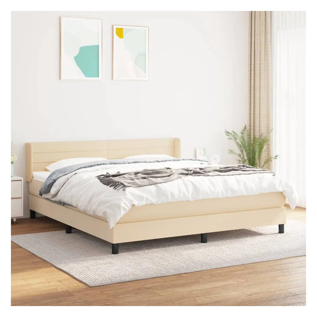 Sommier à lattes de lit avec matelas Crème 180x200 cm Tissu