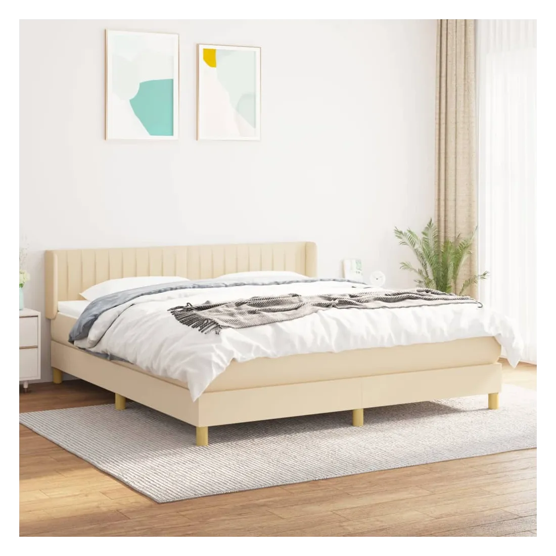 Sommier à lattes de lit avec matelas Crème 160x200 cm Tissu